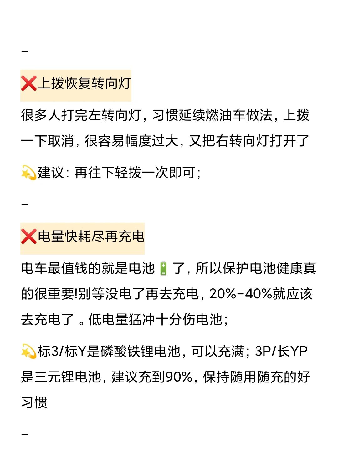 💫标3/标Y是磷酸铁锂电池,可以充满;3P/长YP是三元锂电池,建议充到90%,保持随用随充的好习惯