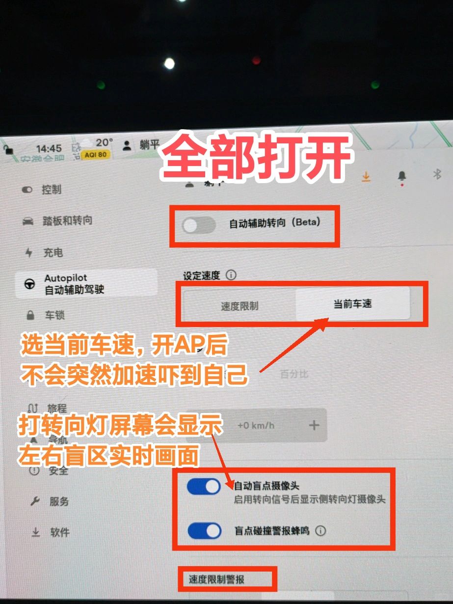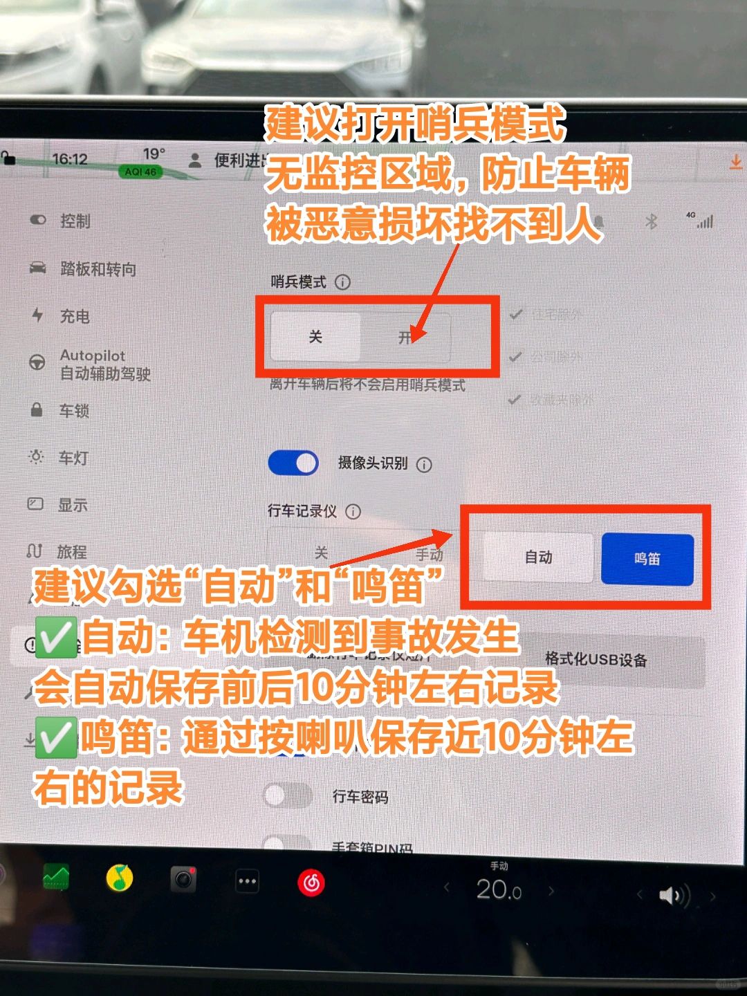 ②行车记录仪:建议勾选“自动”和“鸣笛”