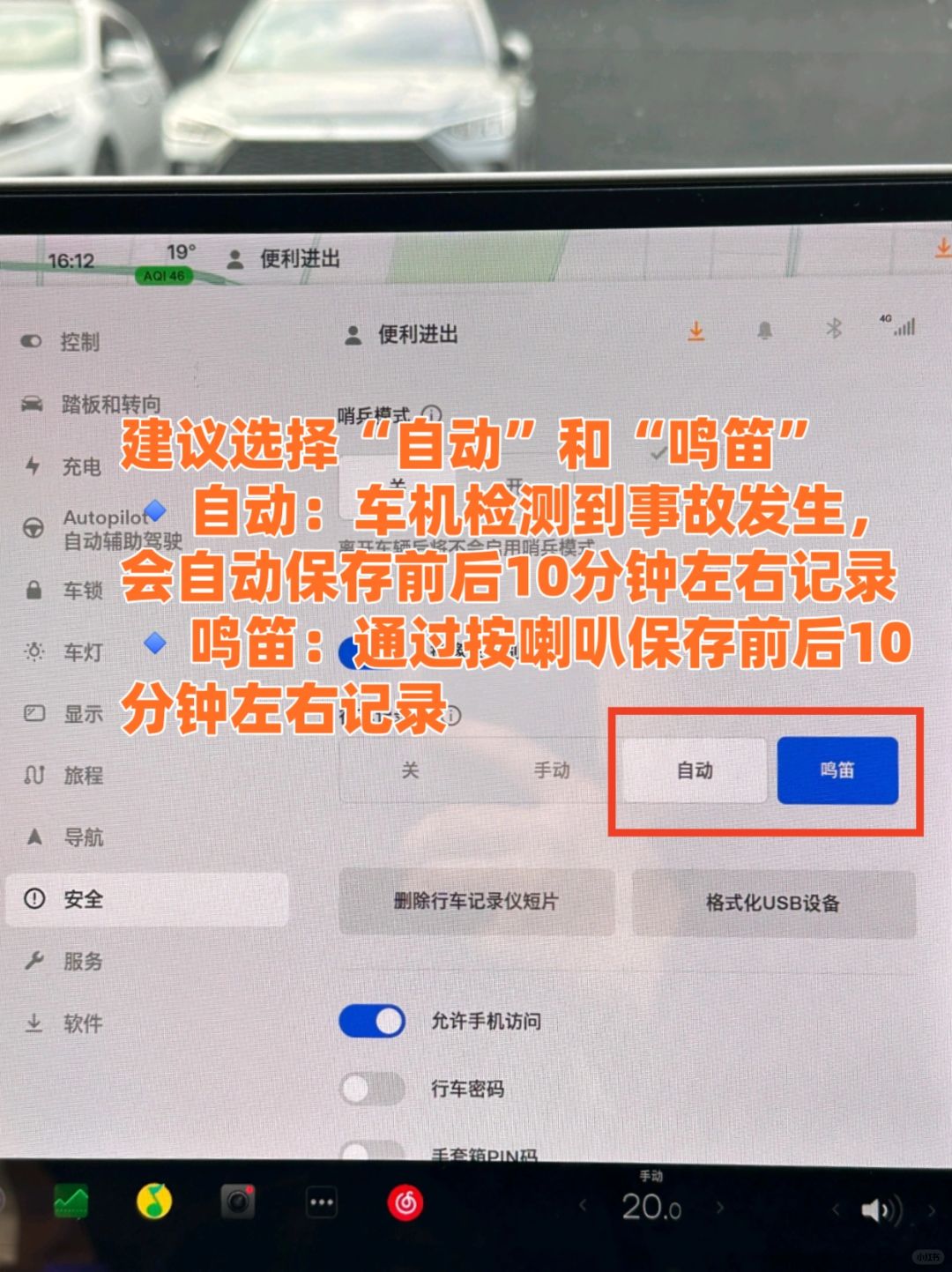 📍鸣笛保存:通过按响喇叭📢保存10分钟左右的片段;