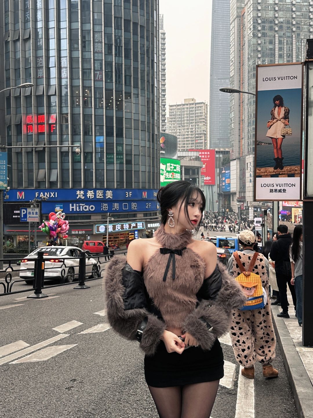 我也拍出了重庆曼哈顿的感觉 就在海淘口腔上面那条马路上 人和车很多