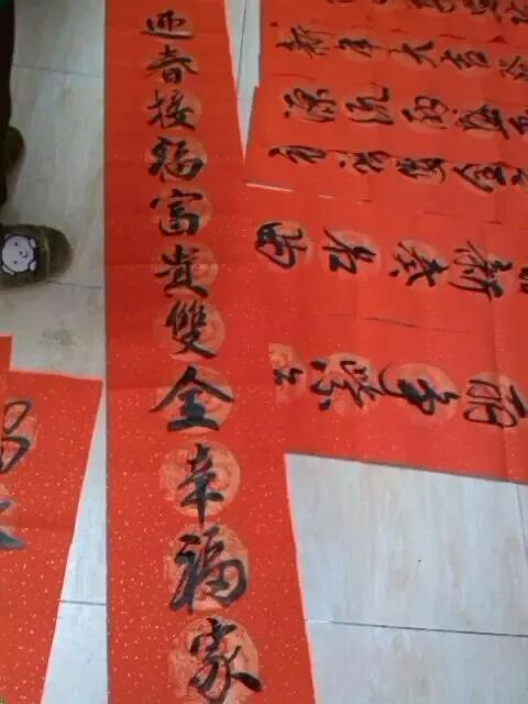 烟纸都来了,开干,书写对联。