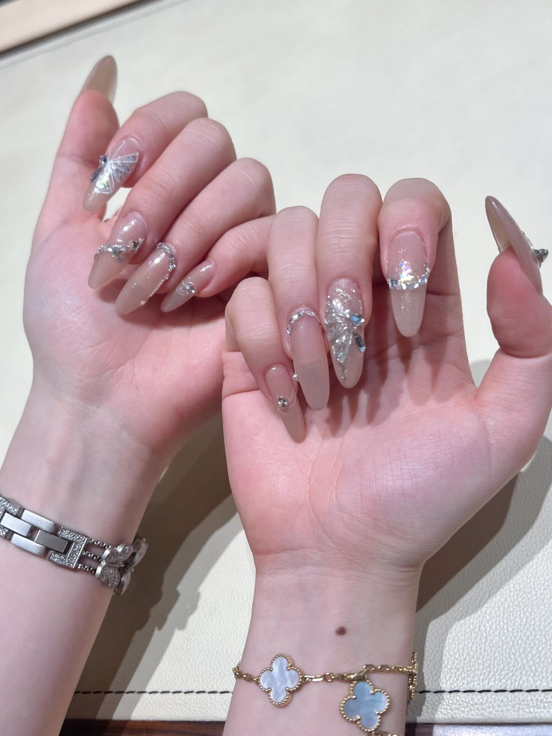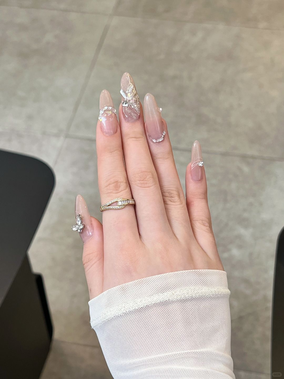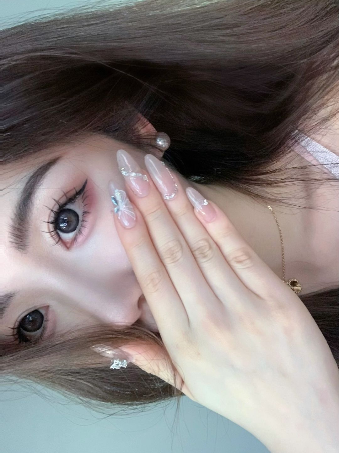 手绘蝴蝶➕金箔➕不规则贴钻 成品太仙气了🫧爱惨