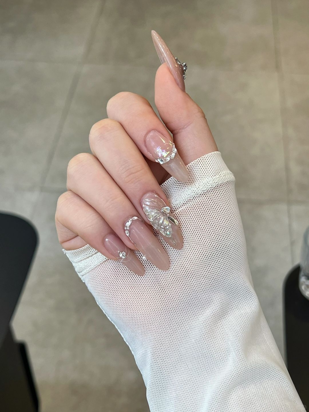 美甲回归了我爱的裸粉透色 杏仁甲型更显秀气