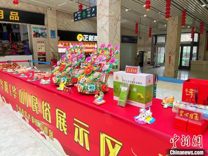 华山西峰索道下站的民俗展示区设有龙年花馍、十二生肖花馍、油轮、油糕、空心挂面、龙形花式饺子宴等当地特色小吃,通过现场讲解,游客在游览华山的同时,也充分了解了当地民俗文化等内容。记者在非遗雅集看到,华阴皮影、韩城面花、华阴剪纸、大荔剪纸、临渭草编、华阴烙铁画、洽川葫芦画等非遗技艺集中展示,也吸引了众多游客的目光。