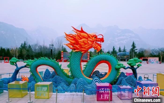 在华山景区广场,以金色、青色为主色调的立体“巨龙”迎接游客到来,其华山松、祥云等元素寓意着新生、希望和勇气。附近的祈福树、“上上签”打卡墙等一系列互动装置,营造出龙年氛围感。辞旧迎新之际,游客们在此共同许下对新年的憧憬与期许,用相机留住其乐融融的美好瞬间。