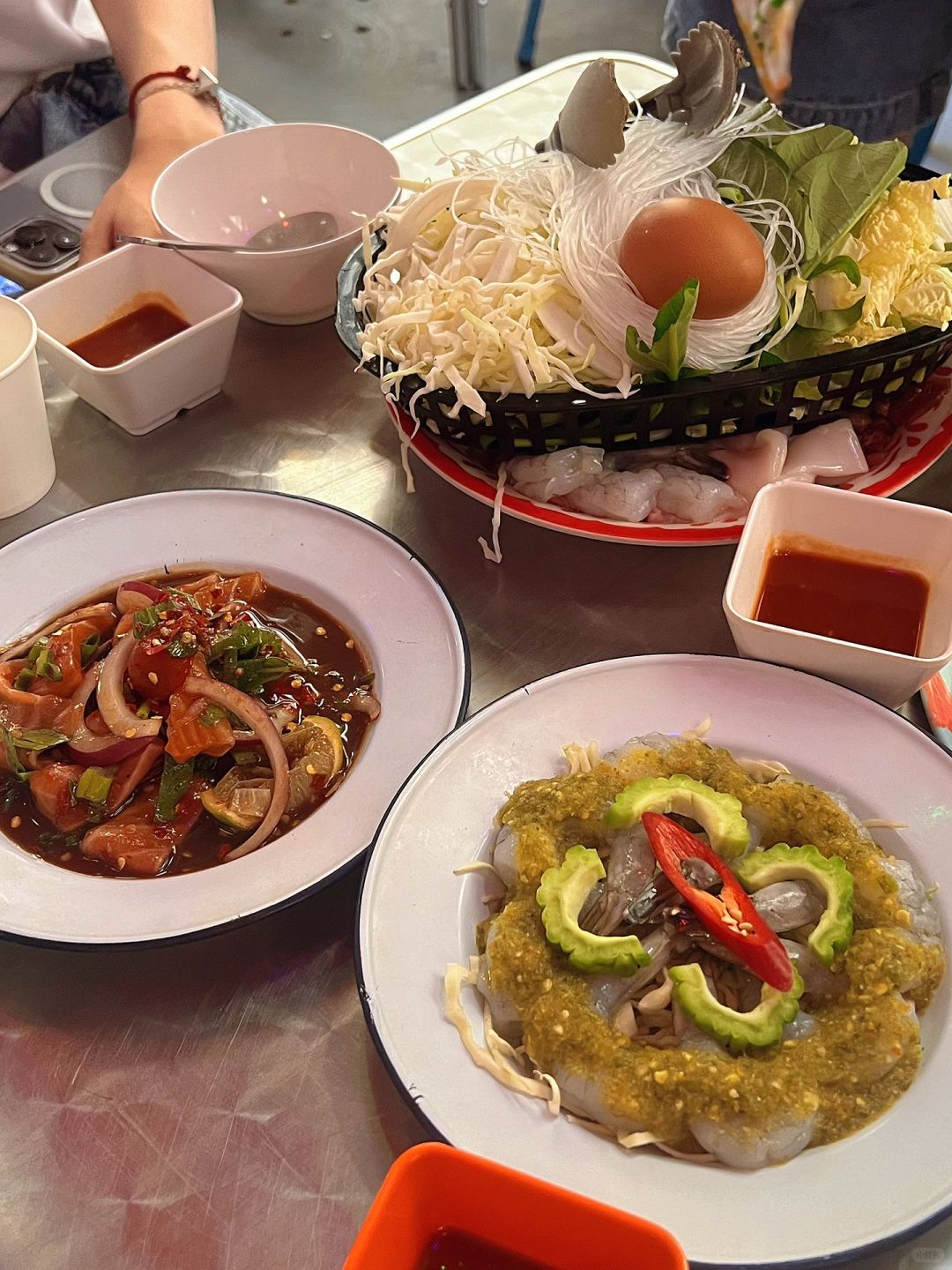 和朋友们一起过夏天就是最开心的🥰 化了个不太日常的轻泰妆来梦回泰兰德🇹🇭 Khaosan Lane真有泰国大排档那味儿! 生腌和小烤肉吃了 火山排骨kuku啃🌋 明天是情人节 又是大年初五迎财神 那就祝刷到这条的友友们发财被爱 好运常在💸💕
