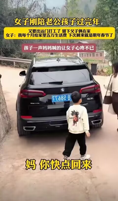 女子年后离家打工,每月给家里五万生活费,孩子一句话让人心疼!女子陪老公孩子过完年,又要出远门打工了。她给父子俩留下五万生活费,并承诺明年春节再回来。孩子舍不得妈妈离开,一声“妈妈”喊得让女子心疼不已。生活不易,为了家庭,女子不得不离开孩子去外地打工。虽然每月给家里五万生活费,但也无法弥补孩子缺失的母爱。在此,我们呼吁社会关注留守儿童问题,为他们创造更好的成长环境。同时,也希望这位女子能够早日回家,陪伴孩子成长