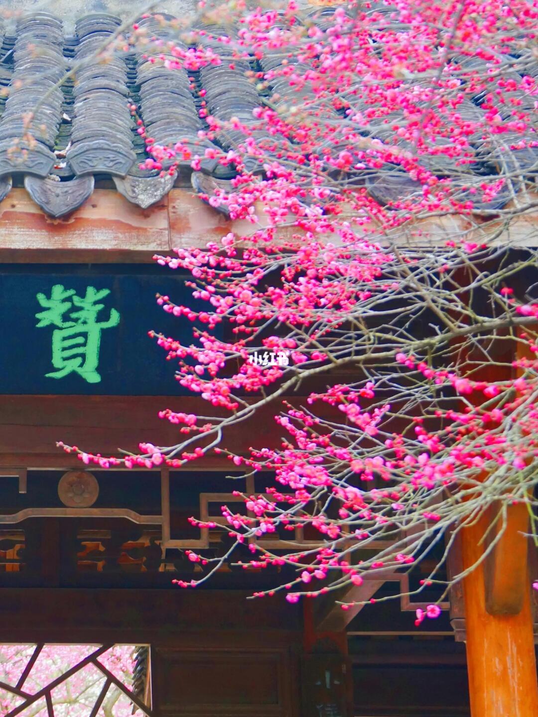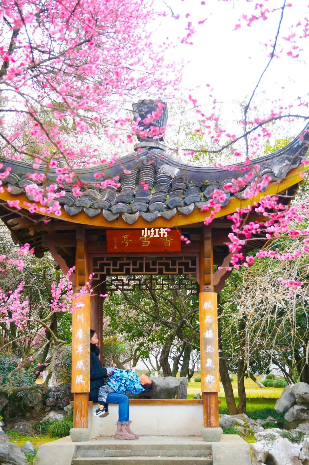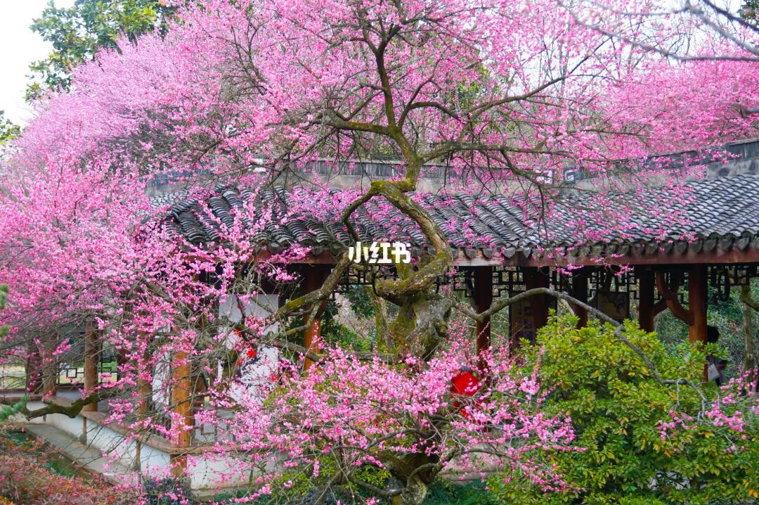 这里梅花很多,也有亭台楼阁相衬托,很美