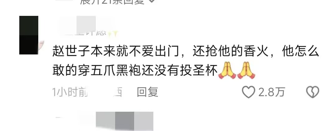 网红真人cos赵世子引发热议。 福建最近有一个游神活动,有一个真人赵世子,在游神的时候穿着和赵世子神像一样的衣服和装扮,混到队伍里和游神队伍一起走。马夫驱赶多次都没有赶走,且身穿比赵世子多一个龙爪的五爪龙袍。不少网友纷纷指责该行为不尊重本土风俗,不尊重传统文化,表示该网红算是踢到铁板了。 你怎么看?