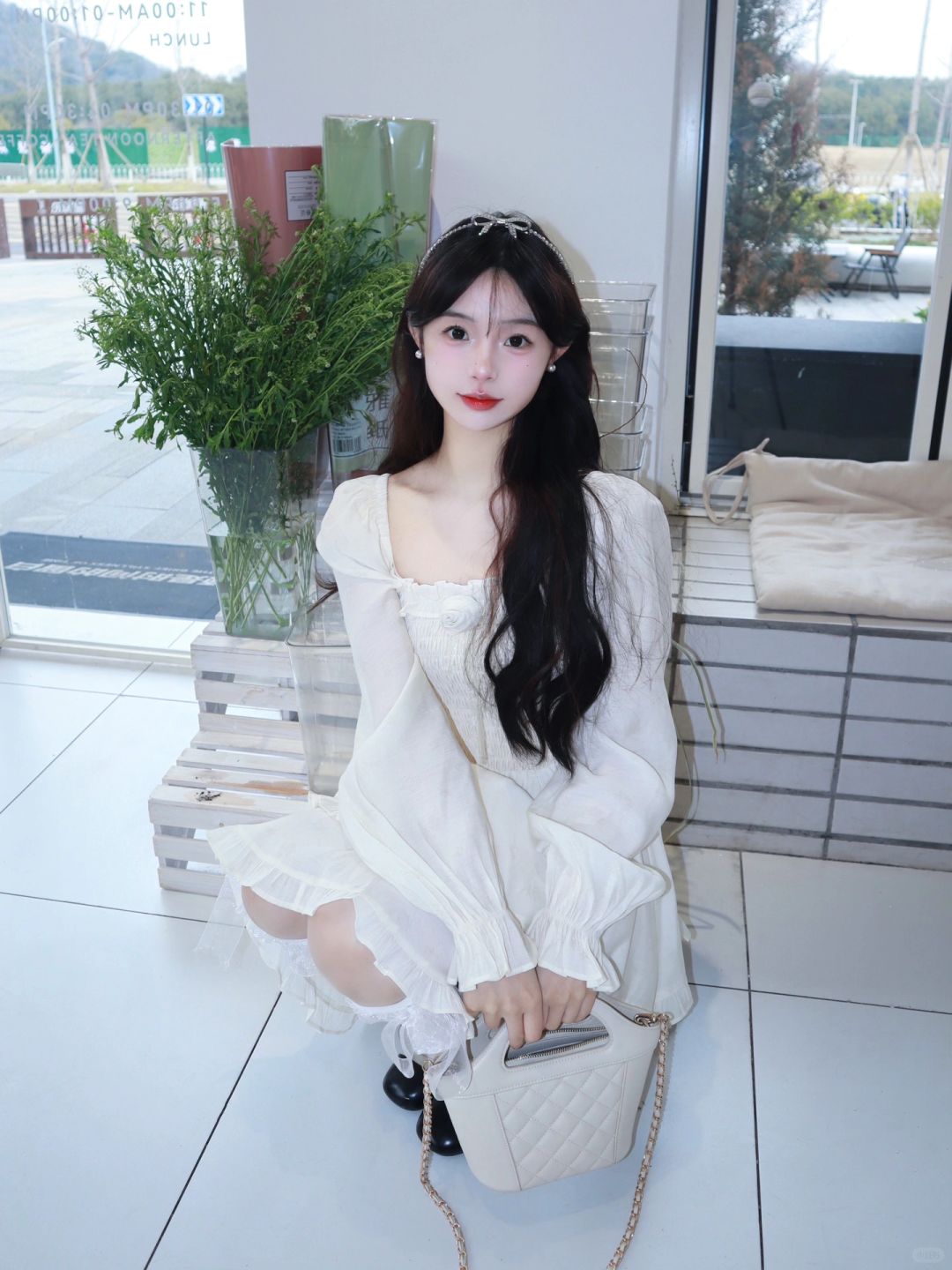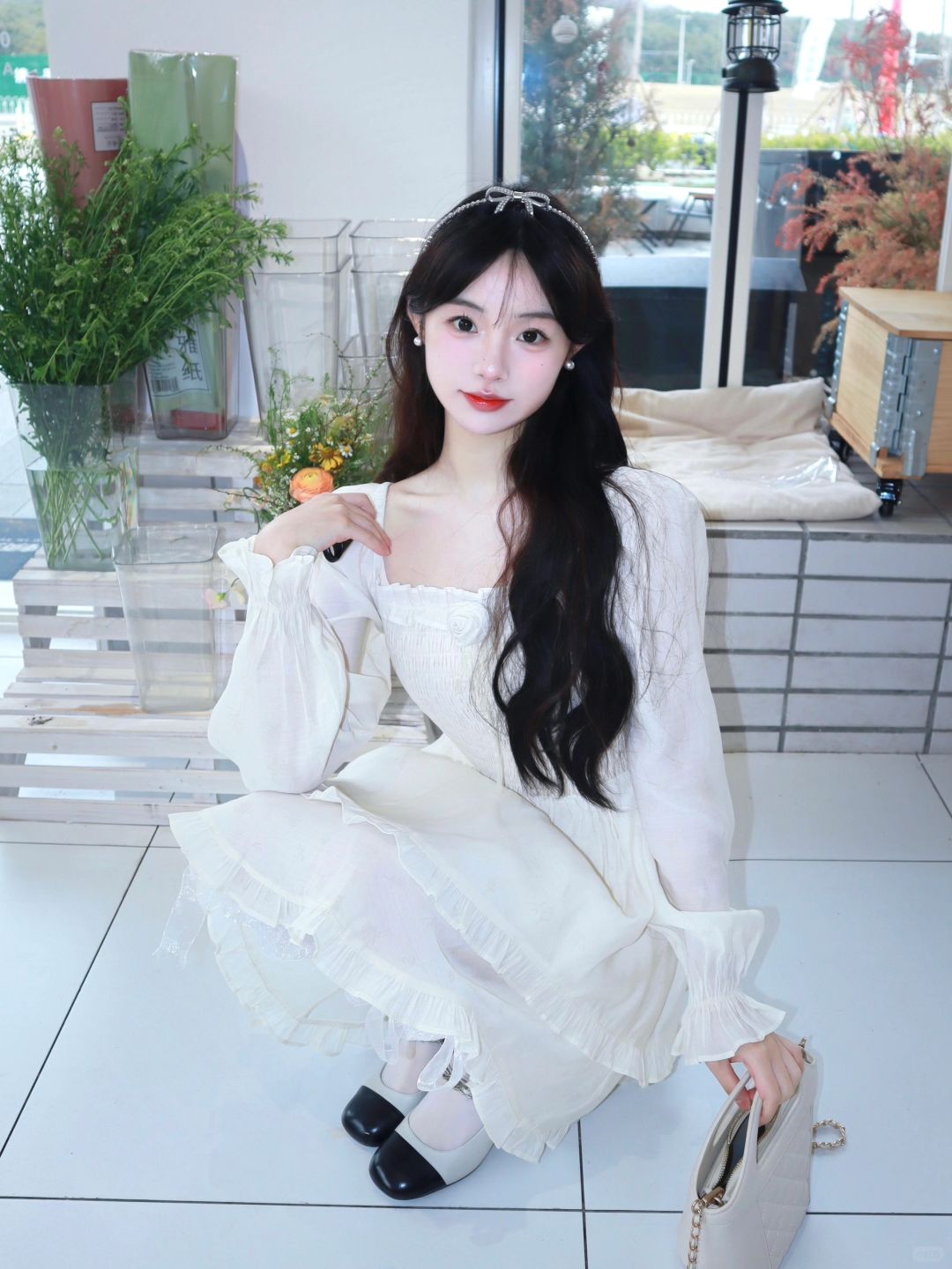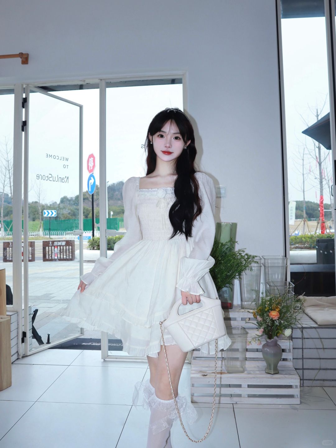 带有玫瑰暗纹的小白裙 太适合春天啦🤍
