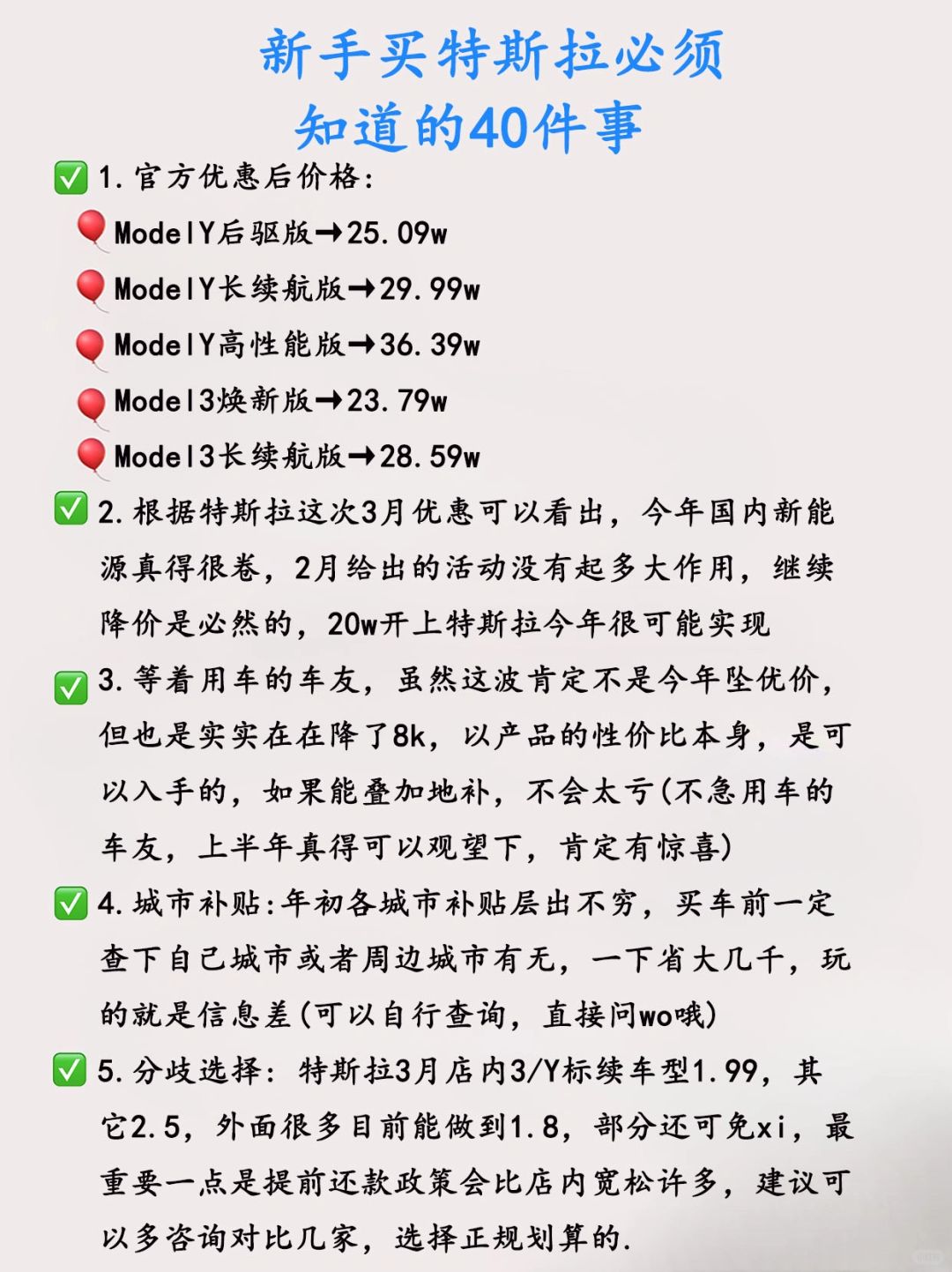 4. 分歧选择:特斯拉3月店内3/Y标续车型1.99,其它2.5,外面很多目前能做到1.8,部分还可免xi,最重要一点是提前还会比店内宽松许多,建议可以多咨询对比几家,选择正规划算的,轻松省几千贴膜超香的👍