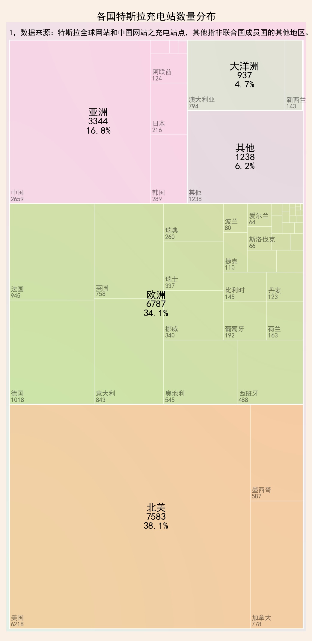 如果要了解各国的新能源汽车分布情况,观察特斯拉的充电桩数量,也是一个不错的对比方式。