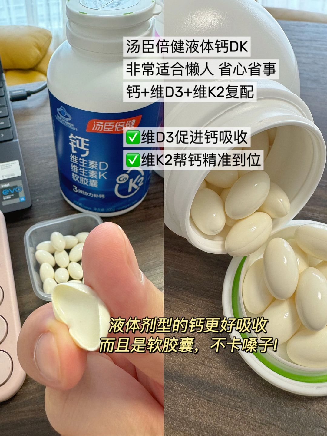 35岁不上班,基本全年无休 做博主+带货+带学员,三重身份连轴转,每天跟上了发条一样,关键是还能该吃吃、该玩玩~!收入也比几年前翻了几倍。 - 有时候我也觉得,活该我挣钱啊!一个人干这么多事情! 自从不上班,我试着把自己作为一个系统去管理,【脑力】+【体力】+【情绪力】,一旦保持这“三力”,感觉能量和潜能完全被激发了。分享几点经验: [一R]脑力 我发现身边那些会赚钱的人,不单单是智商高,很关键的一点是懂得唤醒自己的大脑。 - 如何保持创造性?比起啃书和埋头苦干落得一身腰酸背痛,我更建议大家走出去散步、运动、聚会、做自己热爱的事情...脑细胞也需要滋养,我的很多爆款选题都是在松弛的状态下,刷着蹦出来的。 [二R]体力 赚钱最终拼的就是体力!你得干得动啊!所以一定得学会“保养自己”,维持体力。分享我的保养小诀窍: ✅坚持普拉提私教 这种短平快的运动很对我胃口,运动是让人分泌多巴胺快速恢复精力和能量的秘诀之一。 ✅注重“骨力”保养 居家办公很少晒太阳,再加上作为咖啡重度依赖症,影响了钙的吸收,随着年龄的增长,钙流失也加速,我感觉自己现在严重缺钙,30+ 骨头咔咔脆,也常常会肩颈腰酸不适。 汤臣倍健液体钙DK,拯救了我这个“脆骨星人”。这款液体钙dk,液体剂型,是微米级小分子,比普通的片剂钙更好吸收,每2粒就含有500mg钙,相当于5杯牛奶;钙+维生素D3+维生素K2的三效协力的组合,让钙更好的结合在骨骼;小小软软的胶囊,没什么味道,吞服丝滑不卡喉。 [三R]情绪力 情绪是生产力的一种,谁都不喜欢天天内耗、emo的人。我发现,当我目标清晰、身体有力,没有内耗的工作之后,极少会有消极情绪。而这种能量场,让我链接到了很多的资源,其实大家更愿意靠近情绪稳定、有能量感的人。 推荐几本精力管理的书给大家:《精力管理》《精要主义》《深度工作》 - 姐妹们,搞钱顺序千万不能反了,不是说挣了钱再去修炼自己能量场,而是一边修炼、一边搞钱,相互助力,形成一个滚动的良性循环。 搞钱这事,最终拼的是可持续力!春天已经到来,趁着我们体内新陈代谢提高,给今年起个好头,定下高能的基调。和我一起参加“反手挺背”挑战,坚持21天补钙打卡吧!(见图7)