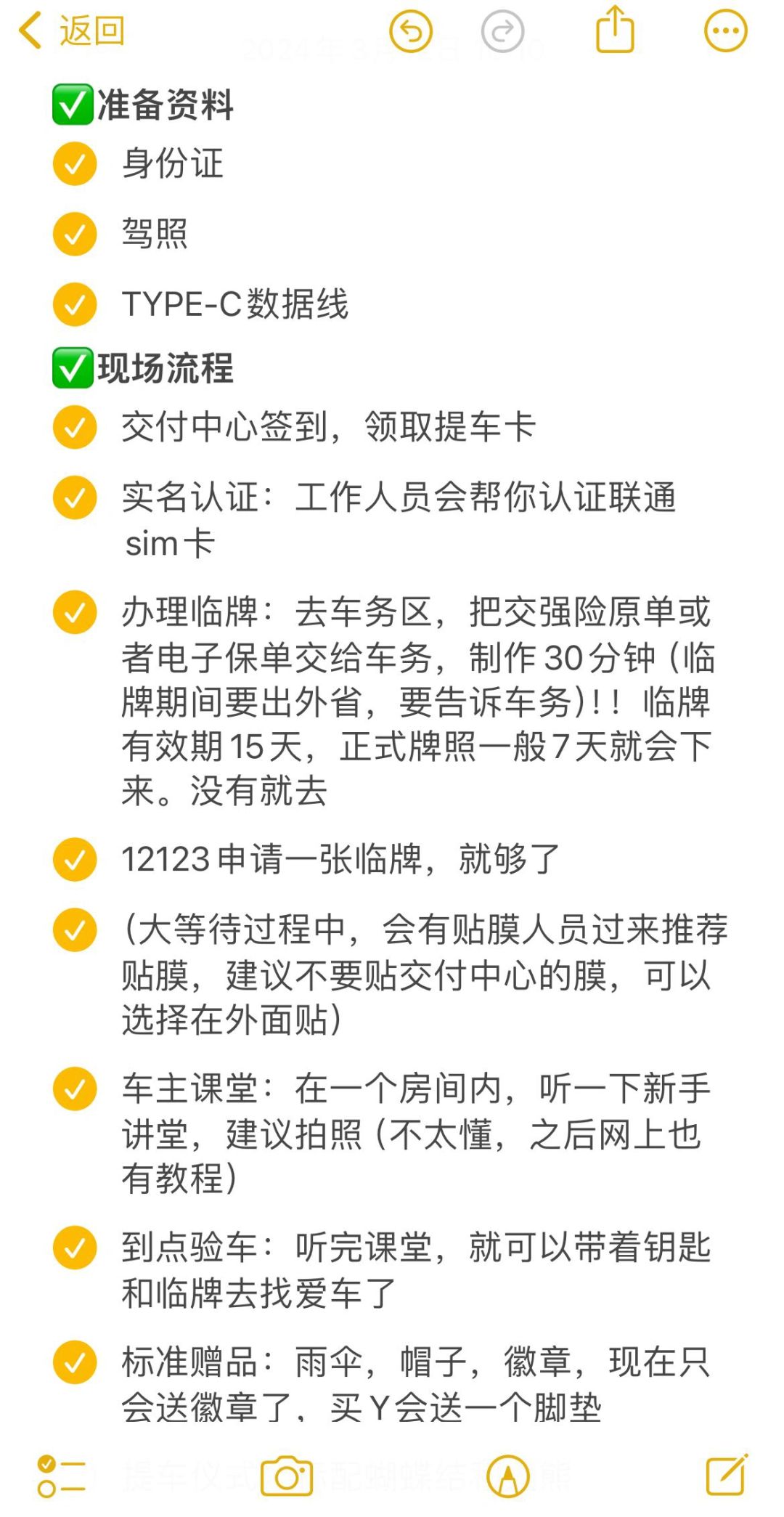 3. 现场流程:签到、认证、临时牌照、车主课堂、验车。