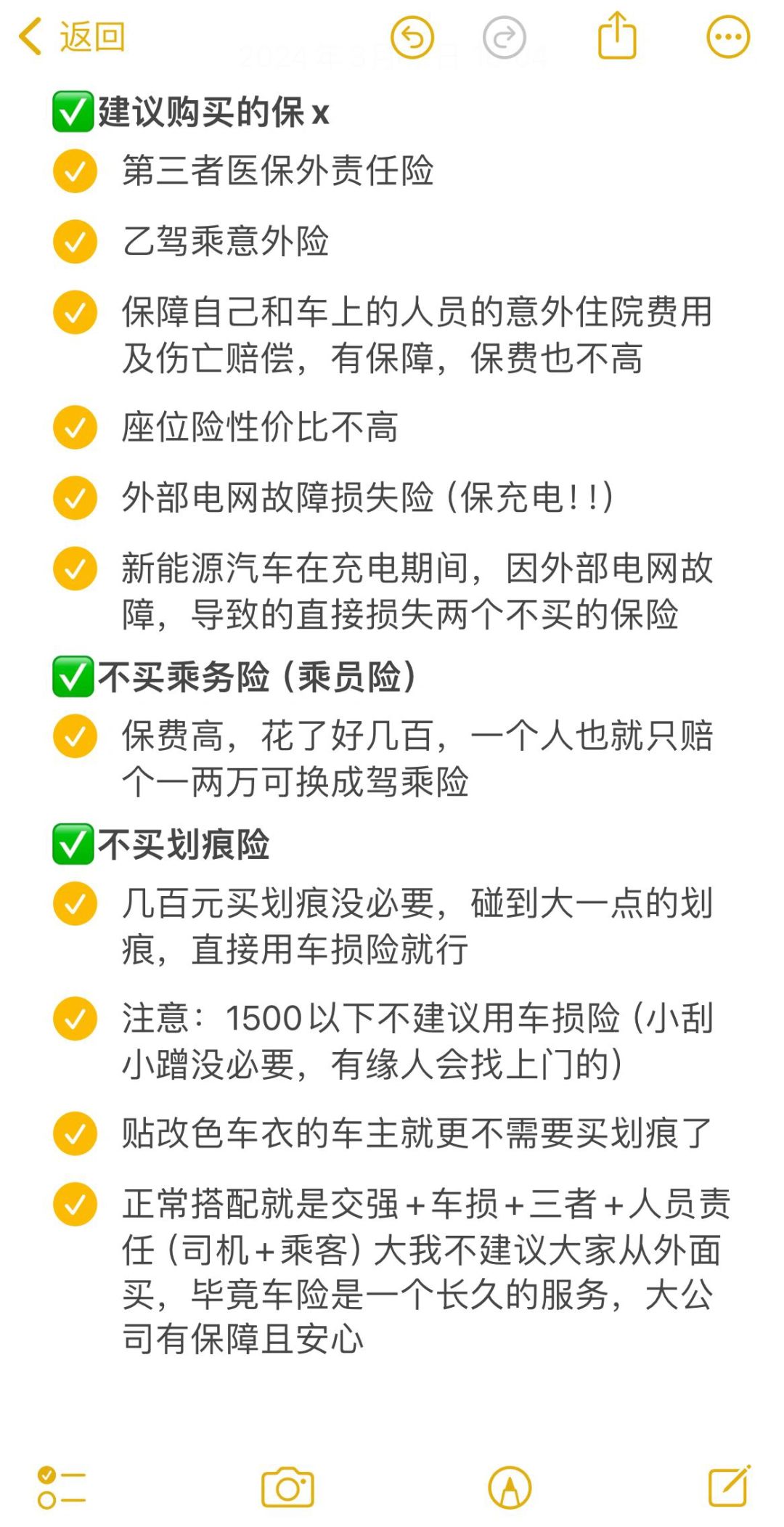 - 不建议购买:乘客险、划痕险。