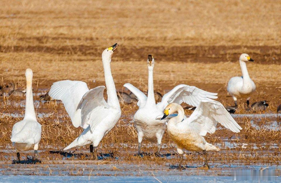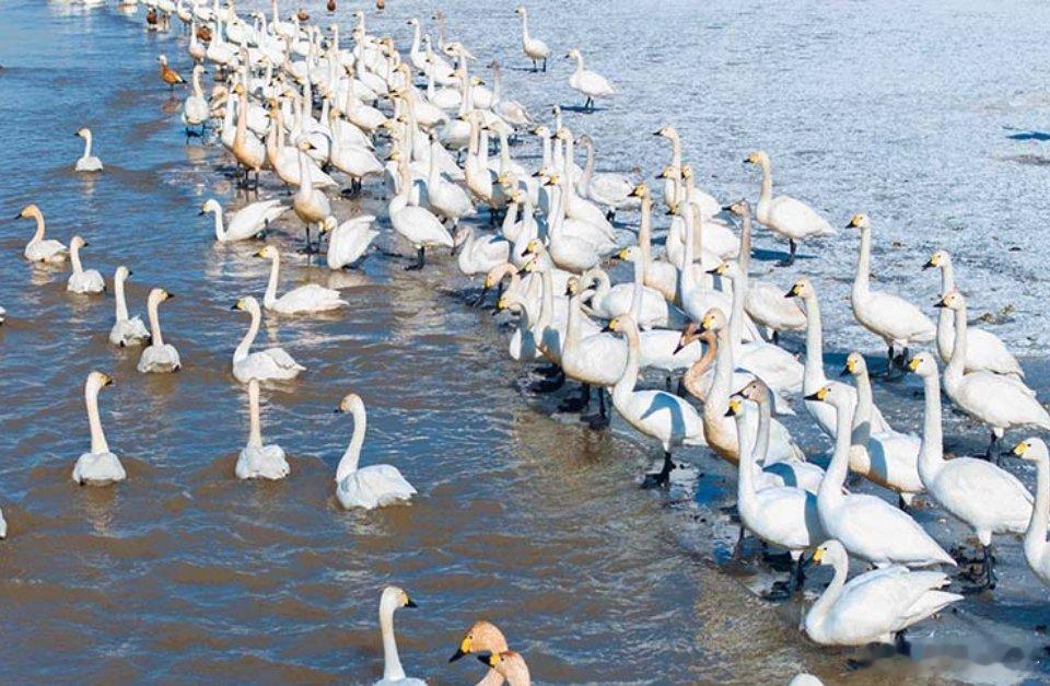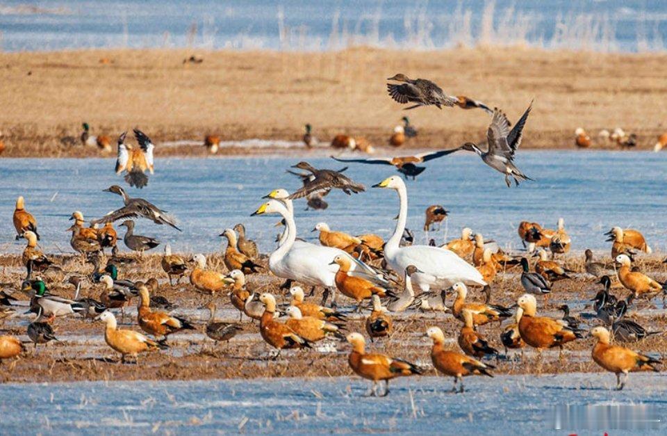 #生态内蒙古 绿色新发展# 随着天气的逐渐转暖,内蒙古呼和浩特市托克托县黄河湿地迎来大批迁徙的#候鸟# ,成群结队的天鹅、赤麻鸭等候鸟在水中游弋嬉戏,它们时而埋头觅食,时而引吭高歌,为春季的湿地增添了生机与活力。目前已发现白鹤、天鹅、鸿雁、赤麻鸭等十余种珍稀鸟类陆续抵达,托克托县黄河湿地也将迎来候鸟的迁徙高峰。