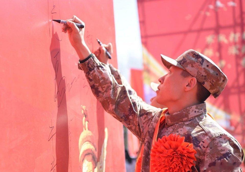 #青春无悔# 怀揣梦想,保家卫国!近日,内蒙古举办2024年入伍新兵起运欢送仪式,新兵们披挂绶带红花,身影挺拔,脸庞坚毅,满怀豪情壮志,伴随着铿锵有力的鼓点,踏上红毯,迈入“从戎门”,依次在“#参军报国 无上光荣#”签名墙郑重地写上自己的名字。入伍新兵代表、新兵家长代表、军地领导先后发言,共话国防情怀、共筑强军梦想。