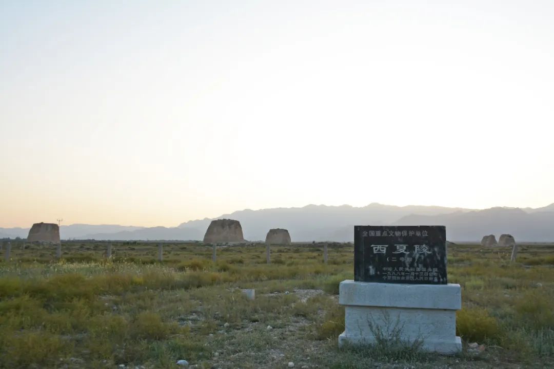 夕阳西下,远处是雄伟的贺兰山脉,一座座数百近千年的西夏王陵,耸立于苍茫的西北大地上。