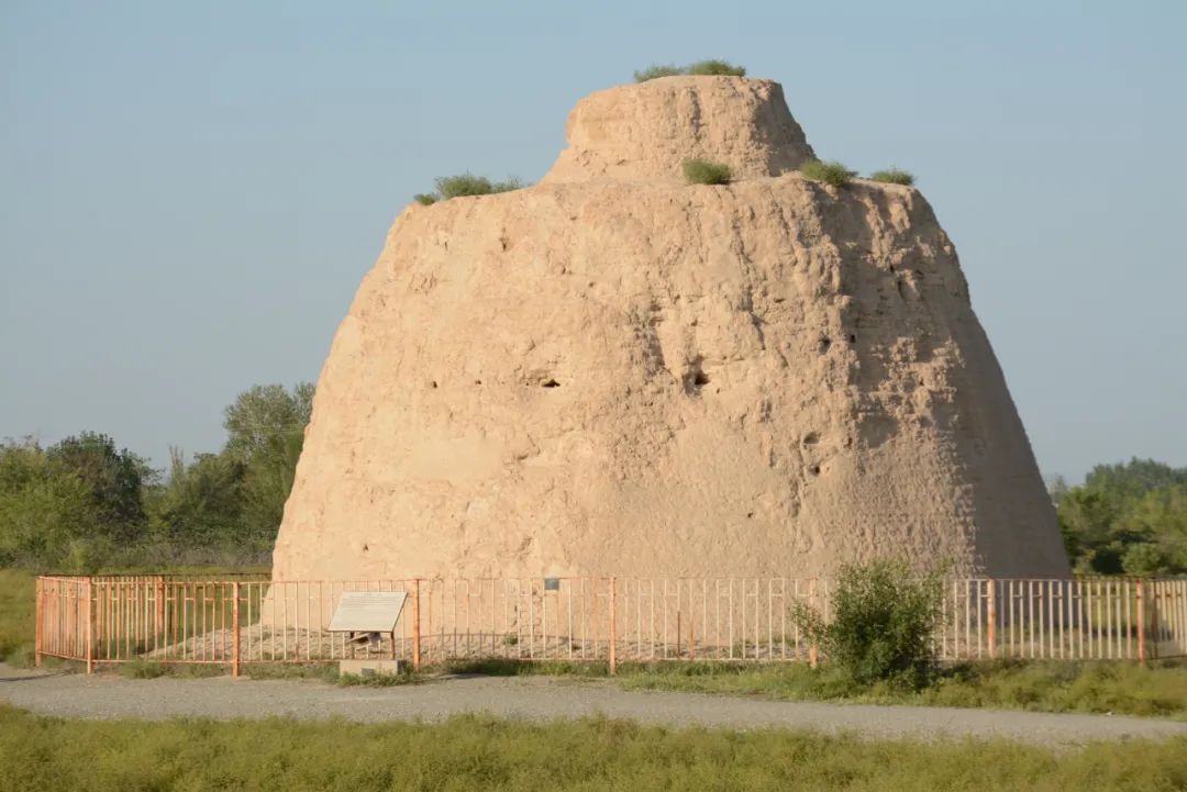 这就是陵园中的阙台,于中轴线两侧对称排列,由黄土筑成,是帝陵区别于陪葬墓的特征之一。泰陵的阙台呈正方形,边长8米,高7米,上部内收,顶部有一小台基,其上散有残砖瓦,推测为原有建筑。