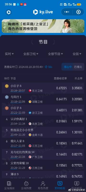 不仅如此,与凤行湖南卫视首播首集酷云收视率巅峰值破0.64%