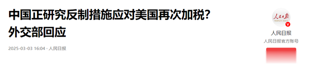 原文登载于人民日报 2025年03月03日 关于“中国正研究反制措施应对美国再次加税?外交部回应”的报道