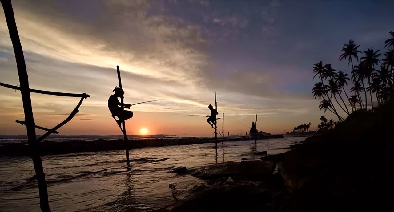 蔚蓝色的大海上,黝黑的渔夫坐在简易的木桩上,成了斯里兰卡一道特别的风景。高跷钓鱼是当地传统的捕鱼方法,也是兰卡独特的人文景观,被称为“世界上最牛的钓鱼方式”。