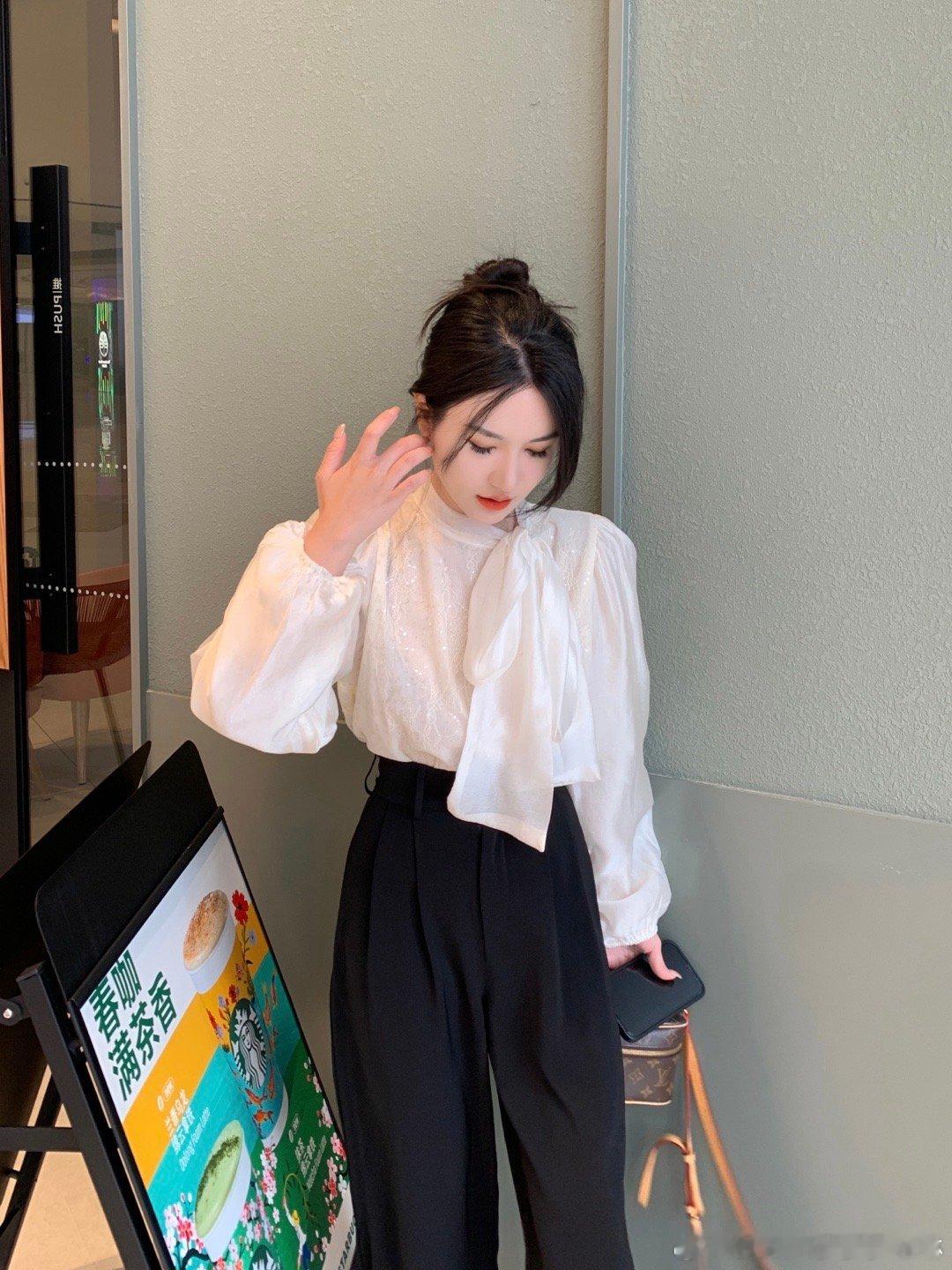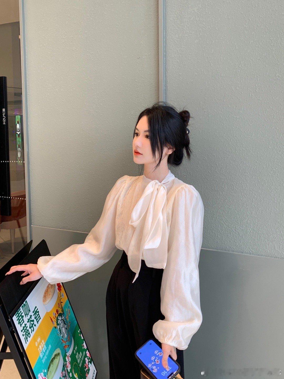 绝美飘带衬衫买家秀,太喜欢这个买家了,每次上新基本都会买。[心][心]