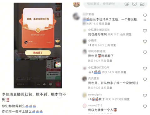 而在多个主流社交平台上,更是充斥着“红包都被机器号和机械手段刷走了”、“蹲守七八轮抢不到红包”、“李佳琦红包杀熟”等网友发帖。