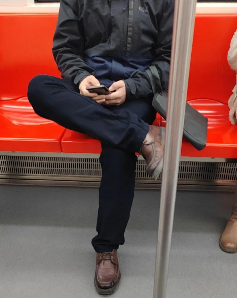 4月1号哈尔滨地铁见闻,这位盘腿大哥又把地铁当做自己家的热炕头了![捂脸] 一个人几乎是占据了两个位置,怎么说呢,身体占据一个半的位置,身上的包占据了座椅的一半! 不过这大哥的素质还可以的,来人了就马上把腿放下来了,不放下来,再遇到个彪悍大哥,这盘腿大哥命不保啊![心] #春日生活打卡季#
