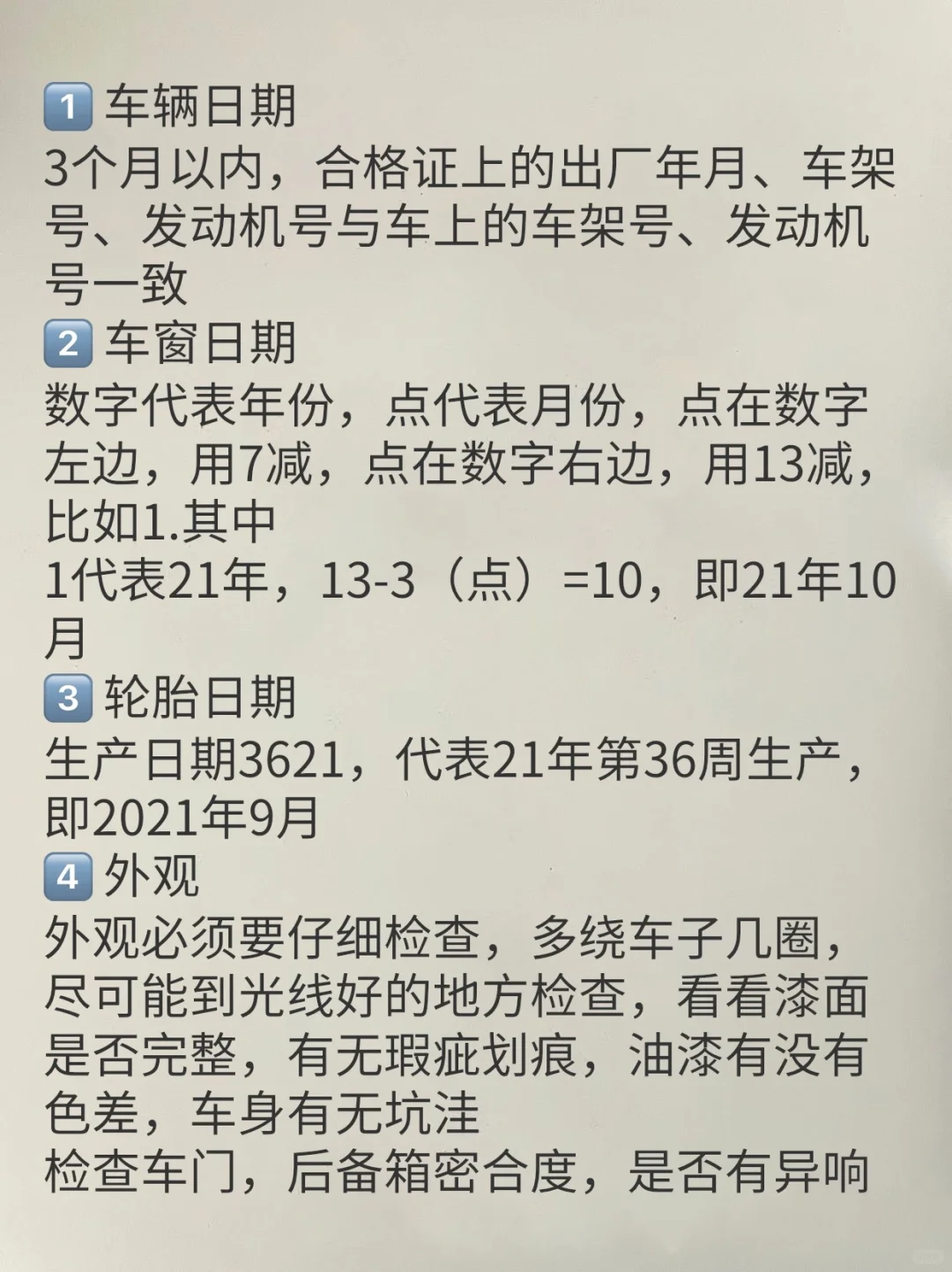 外观必须要仔细检查,多绕车子几圈,尽可能到光线好的地方检查,看看漆面是否完整,有无瑕疵划痕,油漆有没有色差,车身有无坑洼