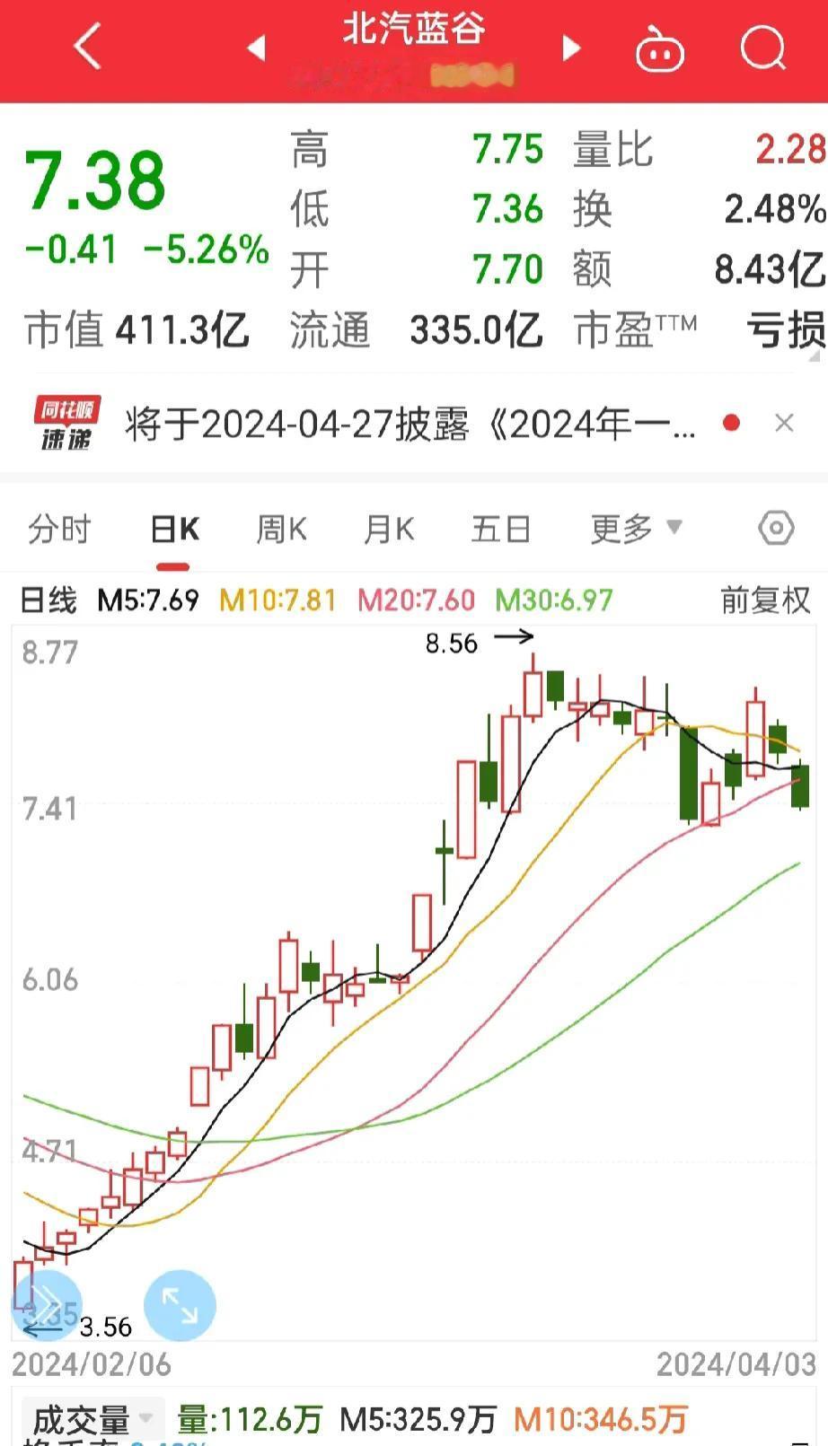 又亏了, 真TM太气人, 昨天追进的北汽蓝谷,今天可能要跌停了, 放弃了长安汽车买了这个垃圾,现在看来要割肉了, 感觉会跌停,真的要跌停了, 头疼啊! 这个破垃圾又损失了几千元, 太TM郁闷了!! #股市分析# #今天又爆跌# #分享亏钱心得#