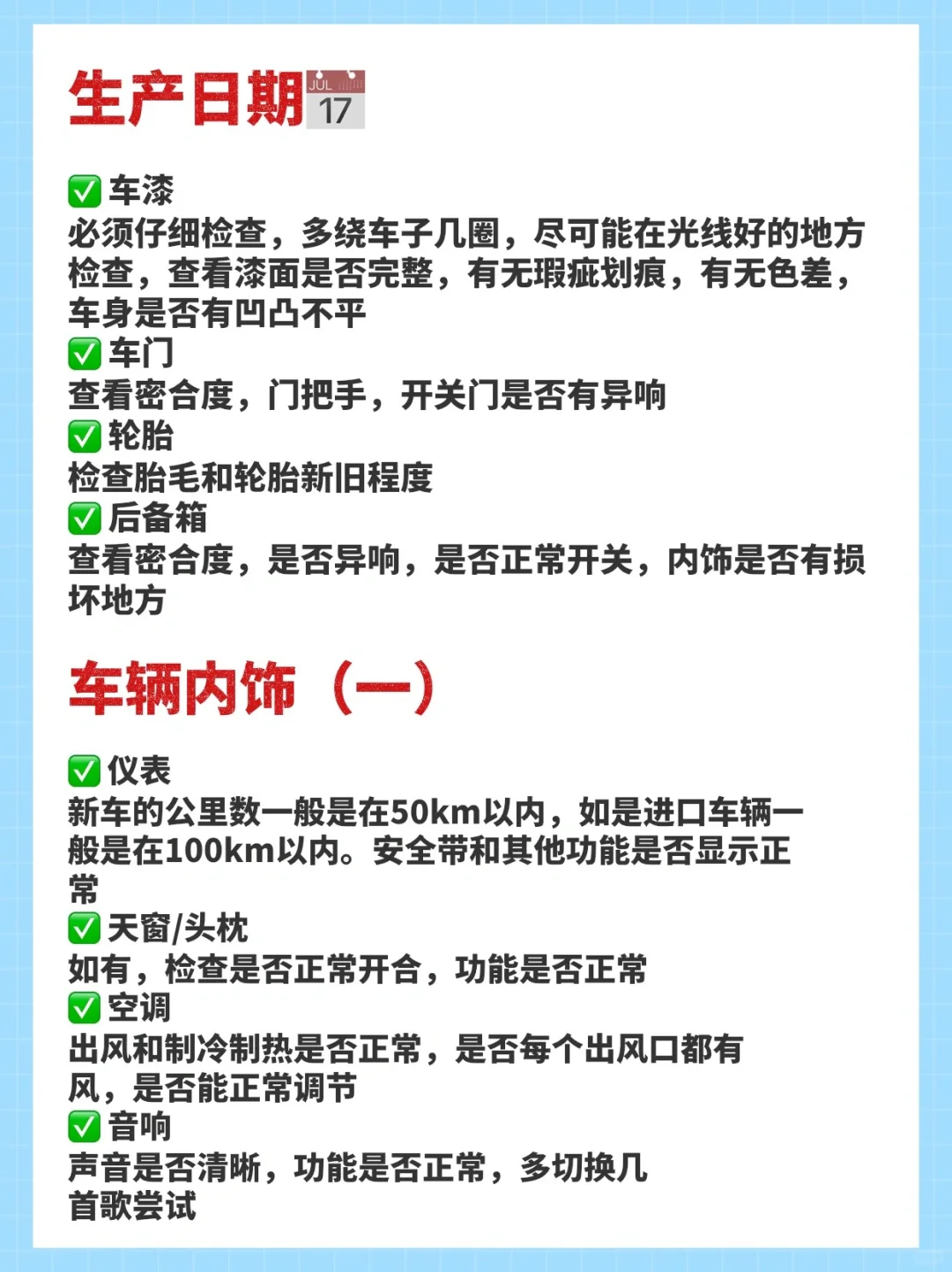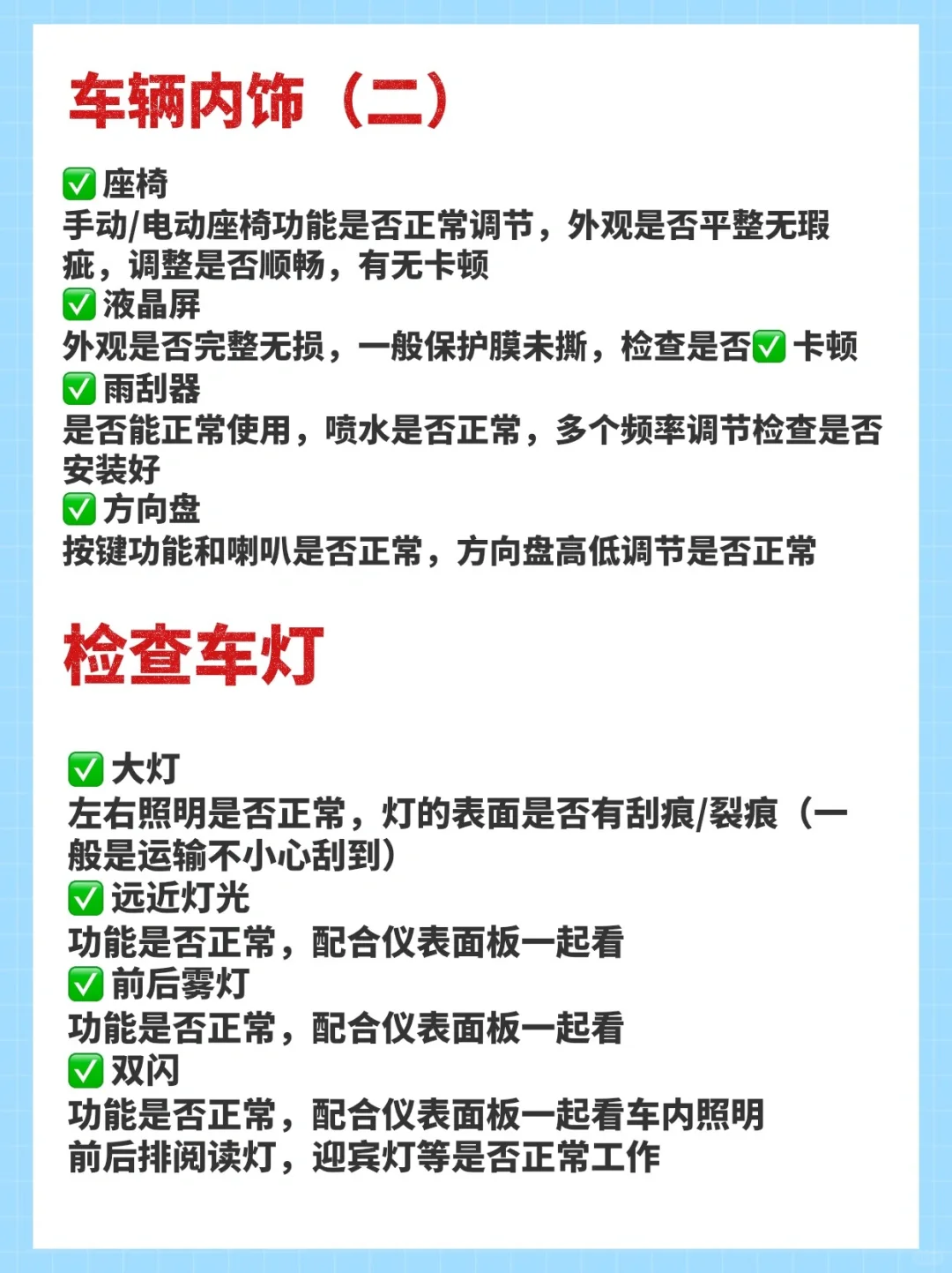 1️⃣1️⃣ **内饰检查**