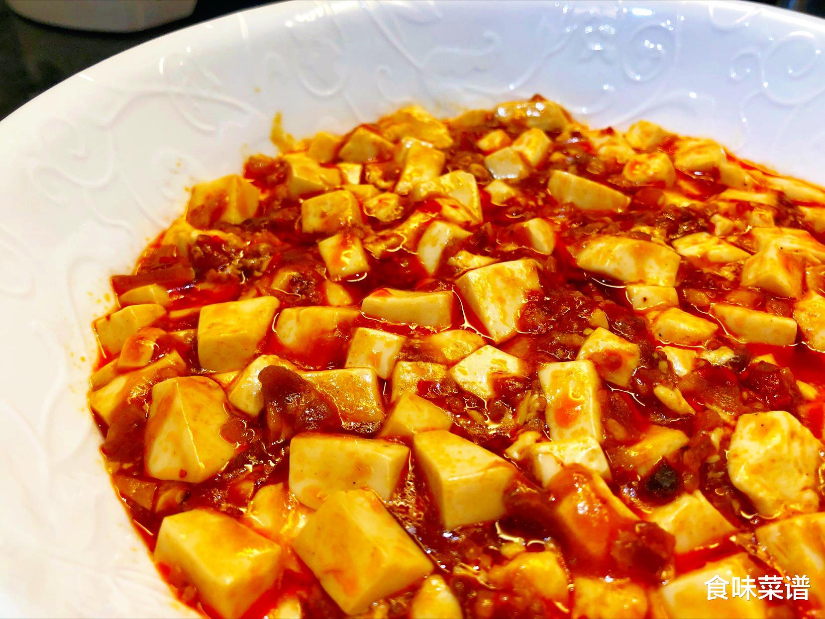 3、按照这个方式做的麻婆豆腐,麻辣鲜香,酥嫩爽口,诱人食欲,色香味全,让人食欲大开,关键是下饭,不知不觉能多吃三碗米饭,太过瘾,家人吃的很满足。