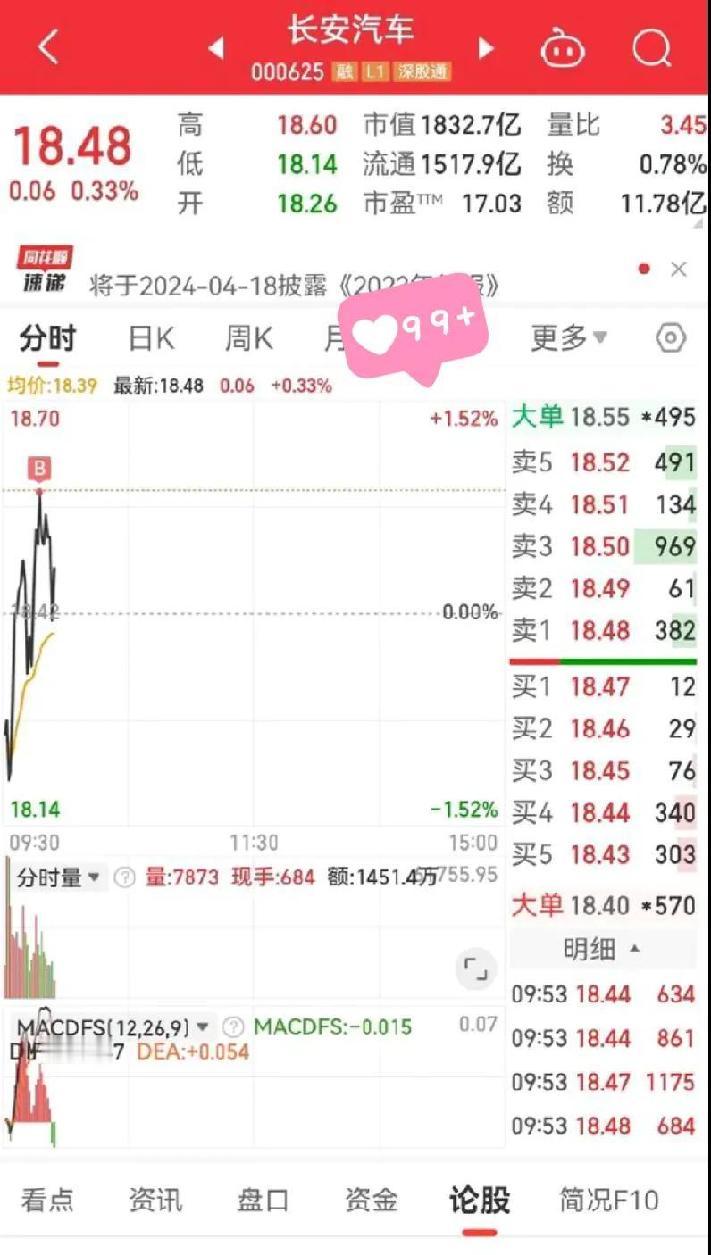 股市来了, 今天的长安汽车值得期待, 我以为只有我自己很冲动, 但看到这位股友,在长安汽车的买点, 我只想说, 果然是一个战壕的战友, 所思所想都这么的相同, 呵呵! 涨起来吧,长安汽车! #股市分析#