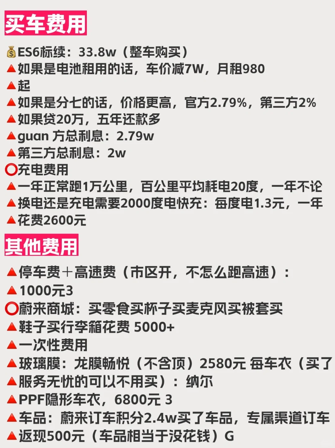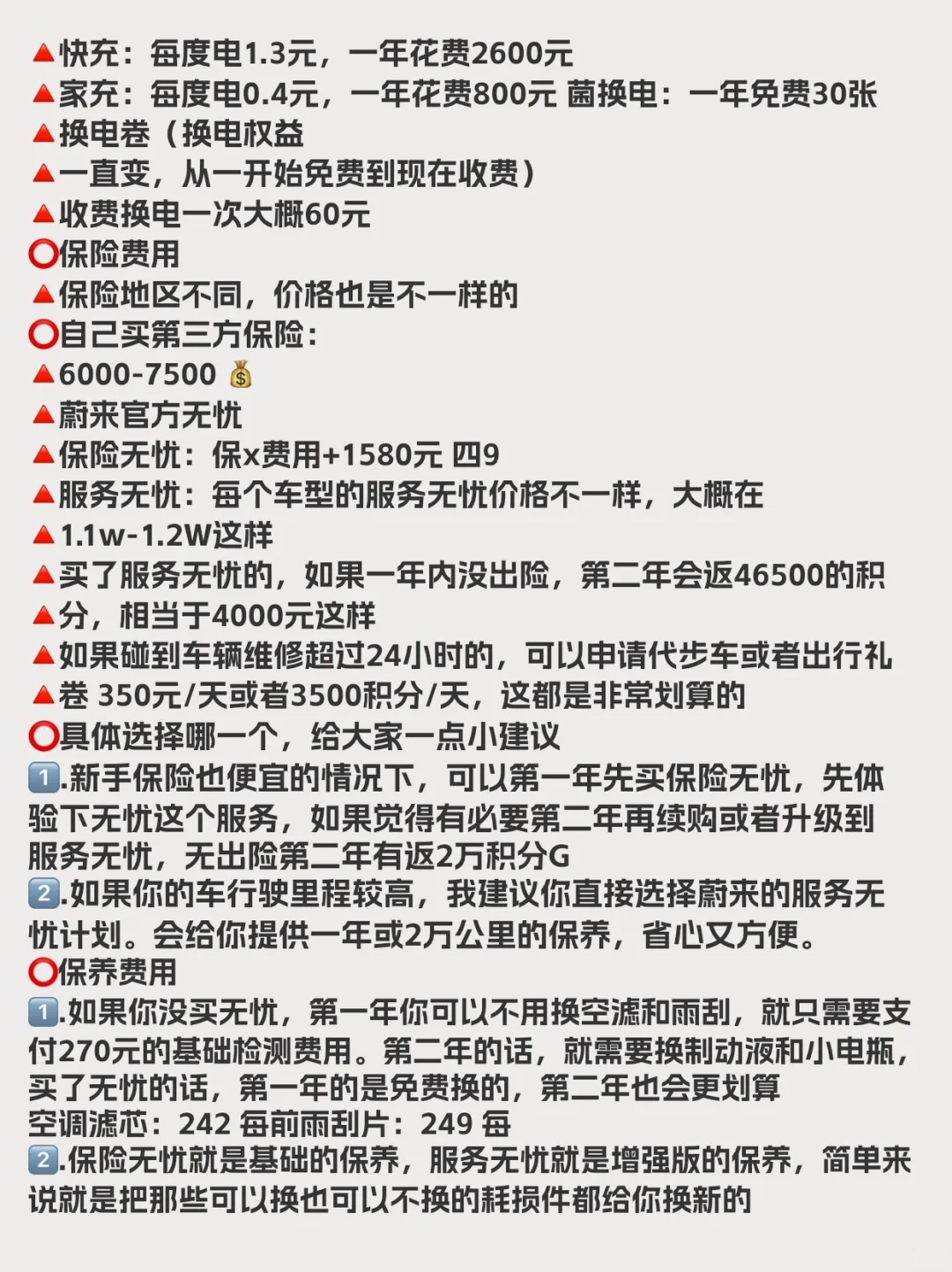 贴膜啥的去掉,那别的电车,买油车都需要的成本应该删除,我感觉我开蔚来一年能省12000起步,因为终身免费换电