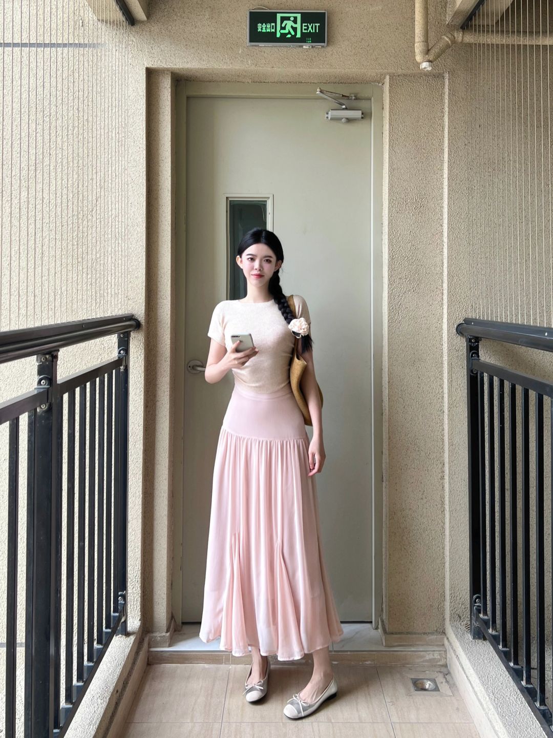 粉色连衣裙,优雅气质,镜前自拍,美不胜收!