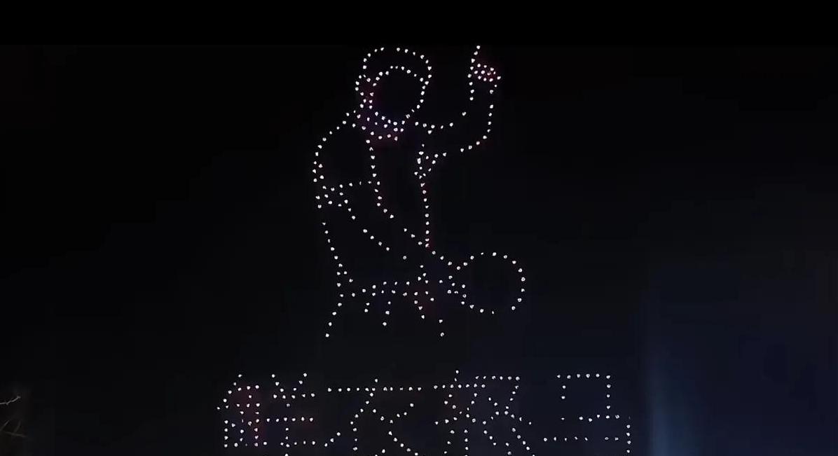 粉丝们不仅租用了无人机,还在空中组成了各种图案和文字。