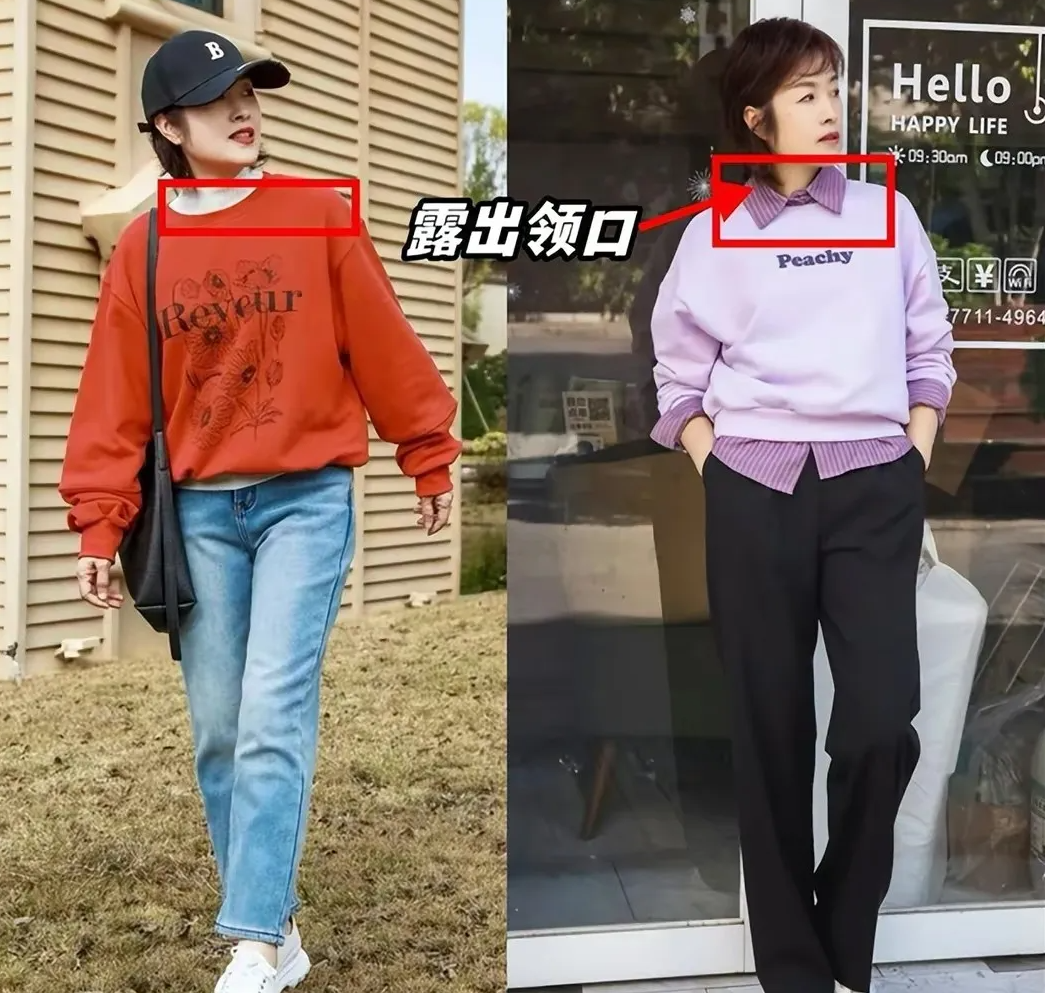 卫衣要穿得好,叠穿技能少不了,这点相信很多人都有所了解。大龄女人穿卫衣,需要的是那份青春减龄感,但卫衣直接套头穿,没有内搭作为陪衬,也会显得十分单一无趣,更尴尬的是显得有些土里土气。