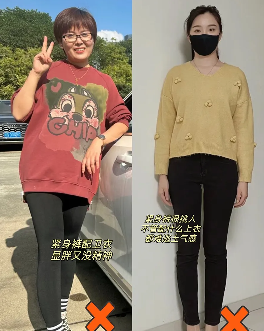 ➋卫衣+紧身裤,土里土气