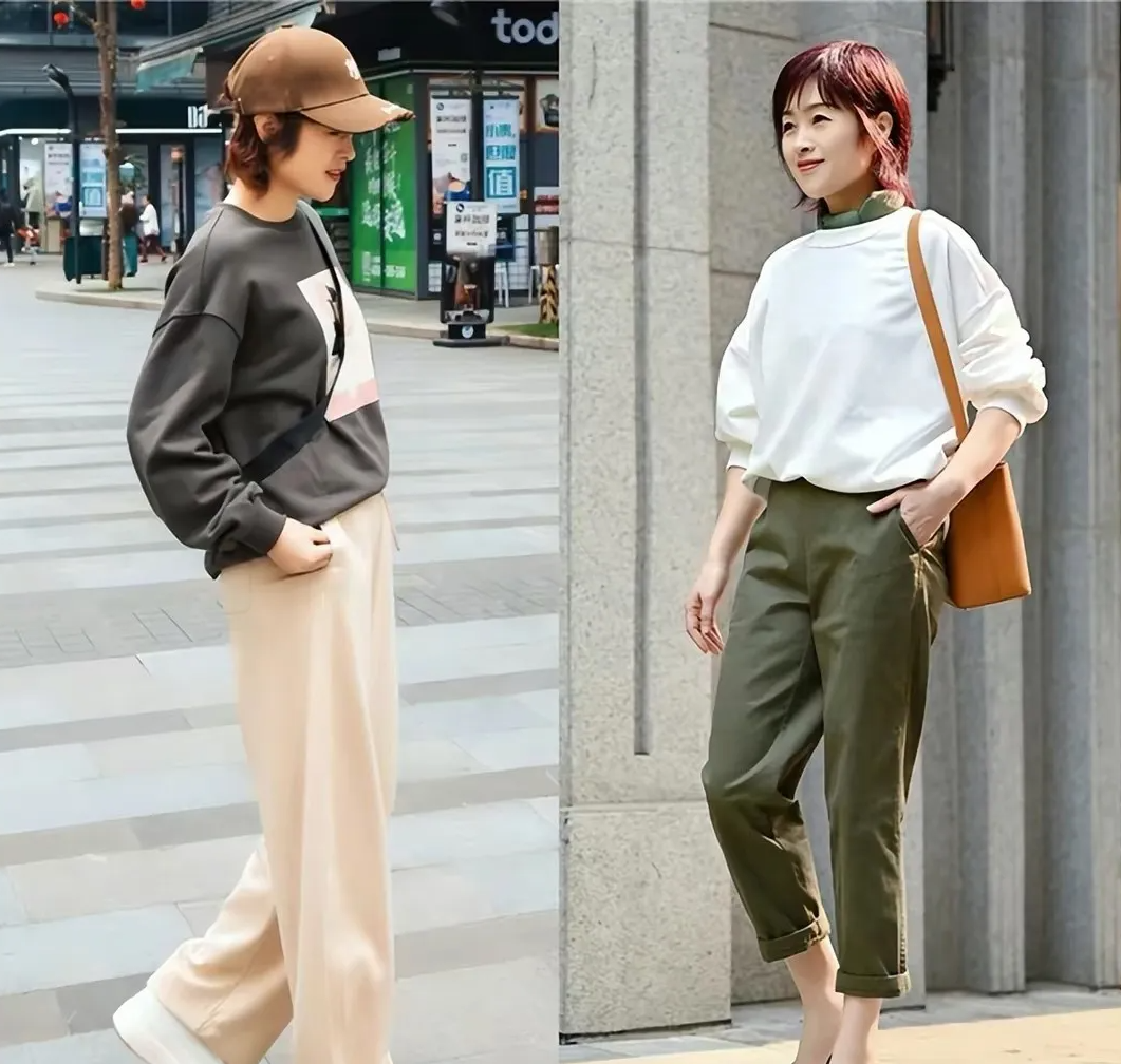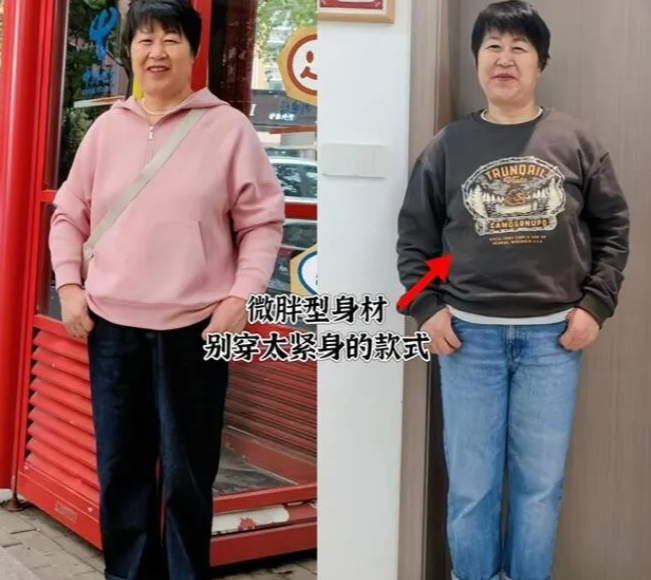 女人到了中老年时期,身材发福的情况很常见,越是如此,在穿搭上就要讲究衣装松紧有致,让舒适度和显瘦度达到平衡状态。这点和卫衣的尺码很有关系,如果按照挑选衬衫的思维去挑选卫衣,很容易挑了较为紧凑的卫衣,上身之后显得局促又紧绷,导致出现上身臃肿的尴尬视觉。