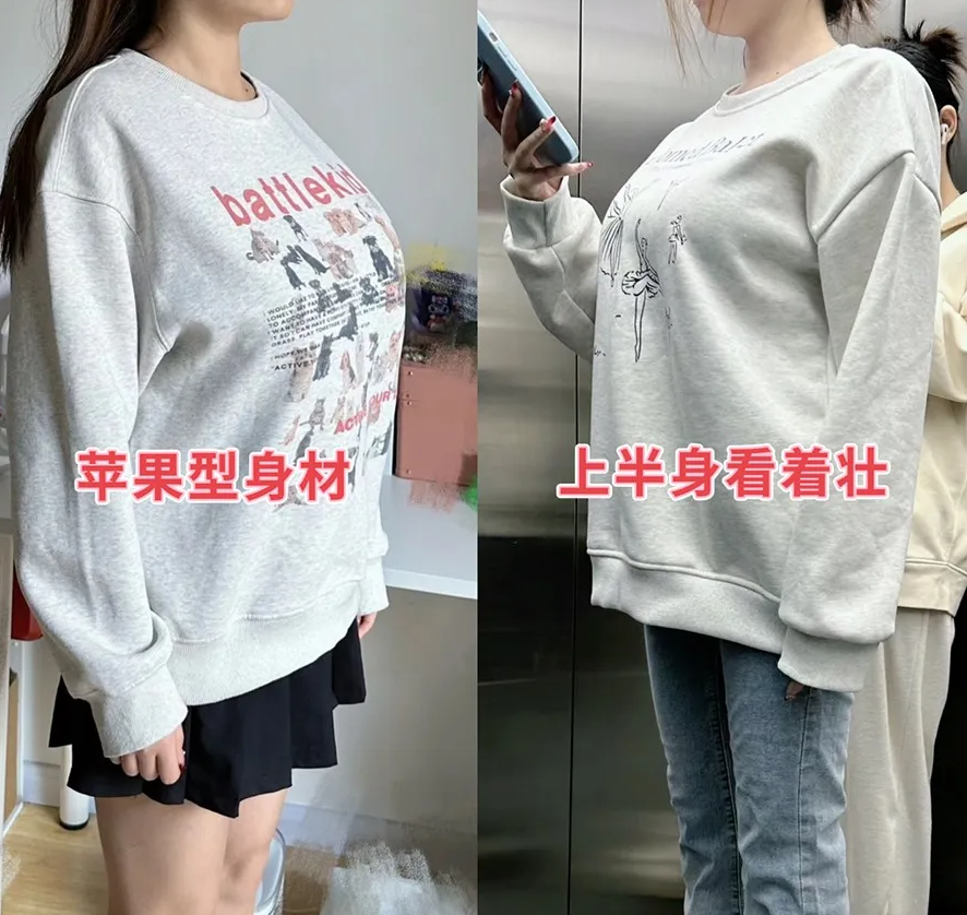 02.上半身曲度大,特别是前幅支撑起来后,卫衣也没法做到收腰,越发显得上半身浑圆又厚重。