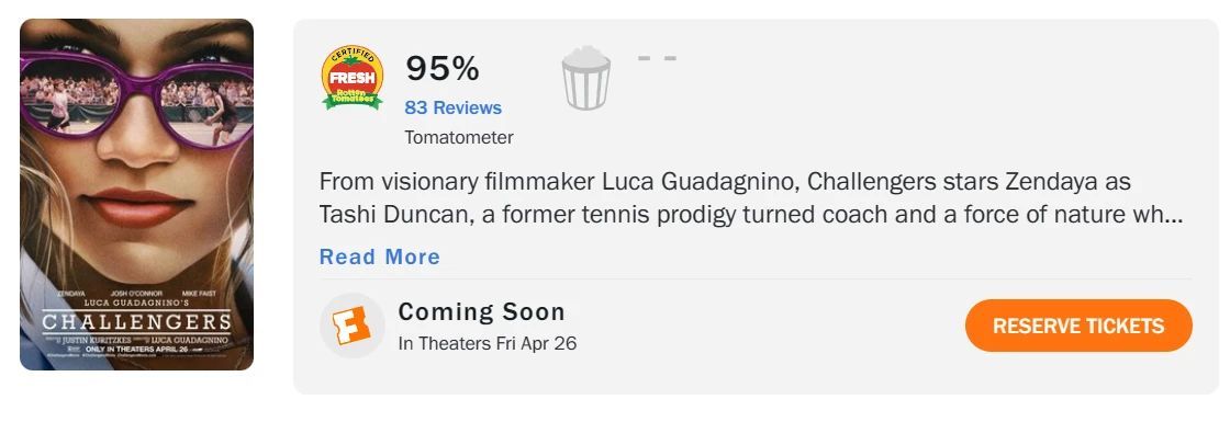 赞达亚出席《挑战者》洛杉矶媒体见面会。影片目前烂番茄新鲜度95%,MTC综合评价88分。 影评人盛赞是“今年最性感的影片”[憧憬][憧憬]