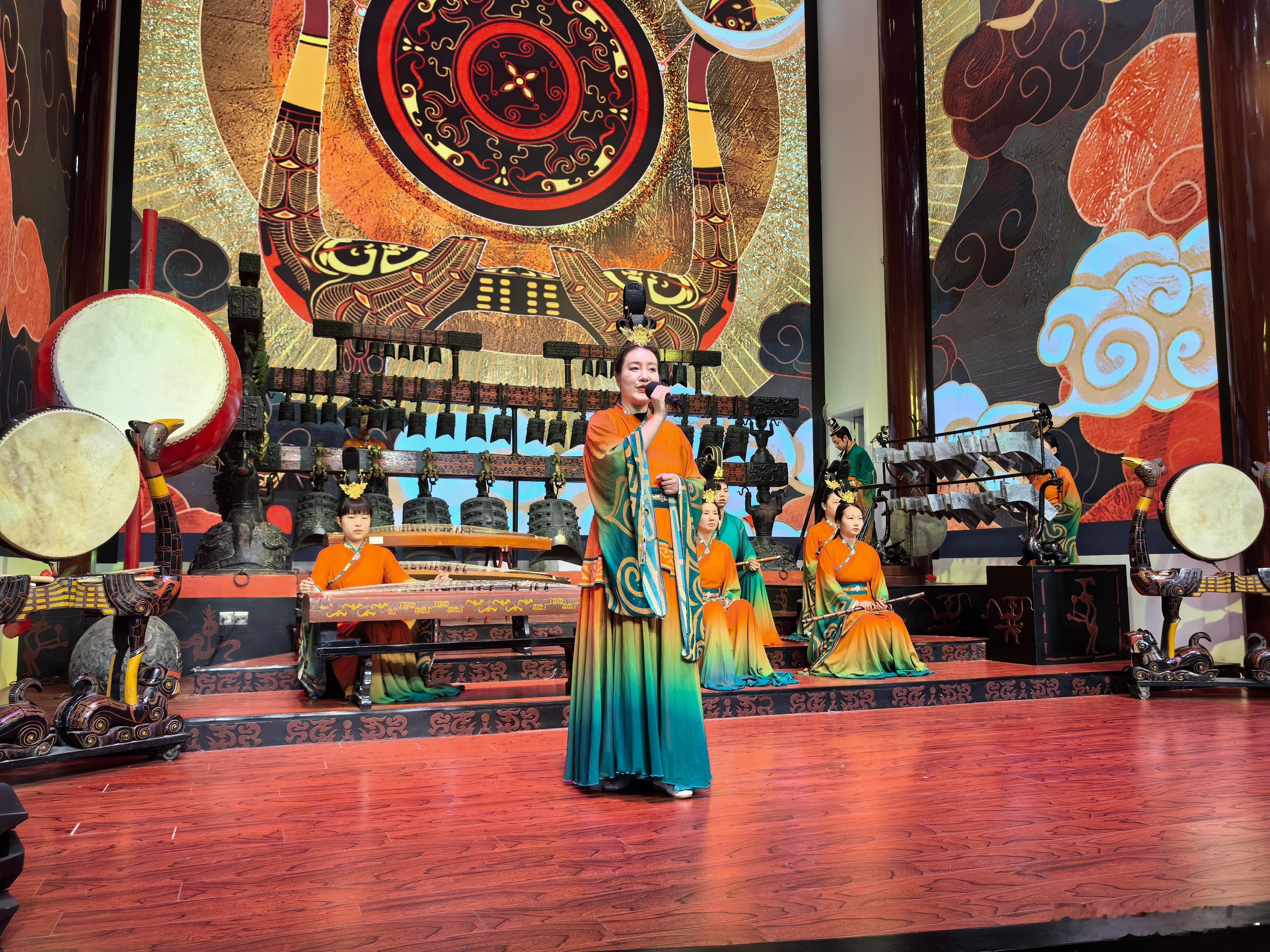 #武汉# 朱碑亭耸翠于磨山西一峰,是一座二层亭廊式建筑,朱柱碧瓦,光耀日月,是为纪念朱德在东湖题词所建。1978年筹建,1982年落成。登亭远眺,只见洲渚棋布,湖港曲折,远方一线江水如流金闪烁,隐约可见,湖光山色,美不胜收。这里还有鼓乐演出,古老的#编钟# 和现代的琴声交相辉映,让人仿佛又回到了古代帝王的莺歌燕舞中,不由得惊叹楚文化的博大精深。