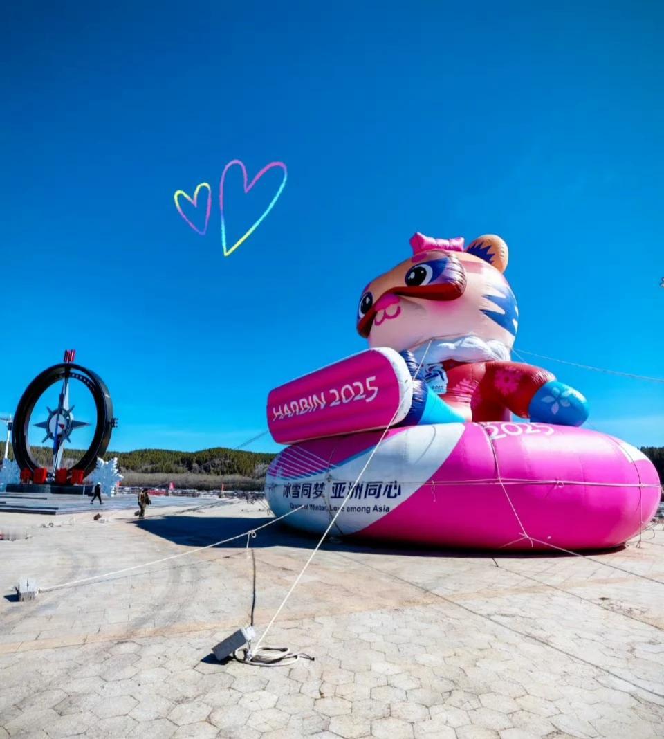 亚冬会吉祥物妮妮到达了漠河,在漠河的北极村进行了打卡! 天空真的是湛蓝湛蓝的,非常纯净 就是妮妮的身体走了这么远的路程,有点脏了![捂脸] 不过,妮妮坐在那,还是很可爱 沐浴着阳光,元气满满!