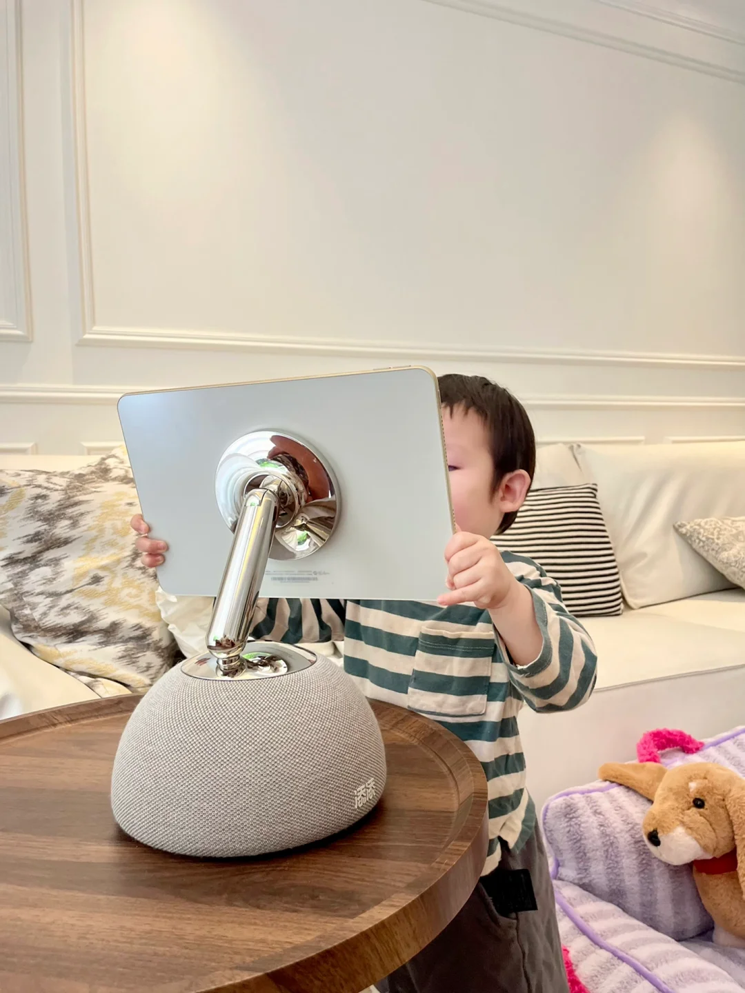 🌈晚上孩子睡了后添添平板机器人就变成我的专属啦,可以追剧听音乐,很贴心的是什么!?是它会在追剧的时候自带追随我的方向转动!像我护肤、洗漱来回走的时候,也不怕错过剧情了。还有下面自带高品质音响,放点我喜欢的音乐,再搭配画境歌词壁纸,既能作为电子相框又能给我带来很沉浸的音乐享受!