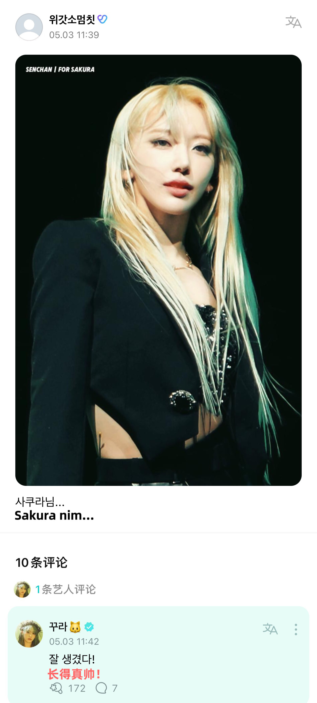 #宮脇咲良[超话]#樱嘤认证:长得真帅!