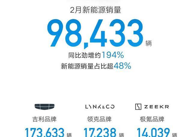 吉利集团最新公布的销售数据显示,今年2月其汽车销量达到204,910辆,较去年同期大幅增长84%。这一成绩标志着吉利已连续六个月单月销量突破20万辆大关。