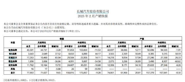 根据最新发布的销售数据,长城汽车在2月份的销量达到77883辆,较去年同期增长了9.65%。特别值得一提的是,新能源汽车的表现尤为突出,销量达到15121辆,同比大幅增长23.24%。这一成绩不仅反映了长城汽车在传统燃油车市场的稳步发展,也展示了其在新能源汽车领域的强劲增长势头。
