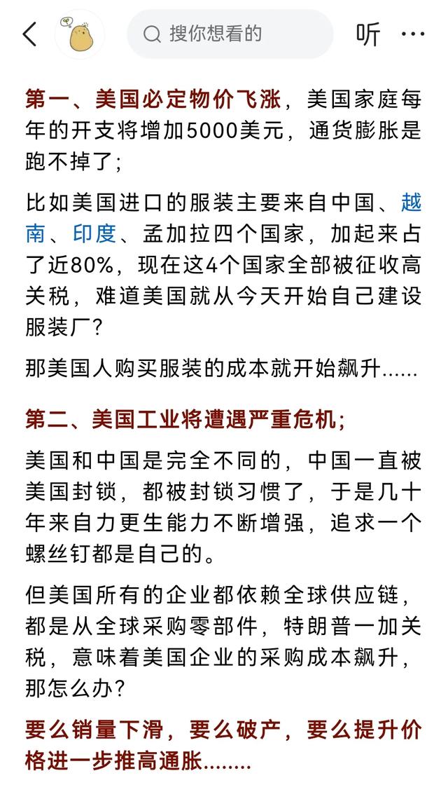 如此做法的后果就是美国自己制裁自己,美国绝大多数物资都是从外部采购的,此举势必让美国采购成本大幅上升,美国没有能力自己制造消费品,这十几年几任总统都想搞制造业回流,但没有一个总统能做到的,美国已经不具备制造业存在的土壤。