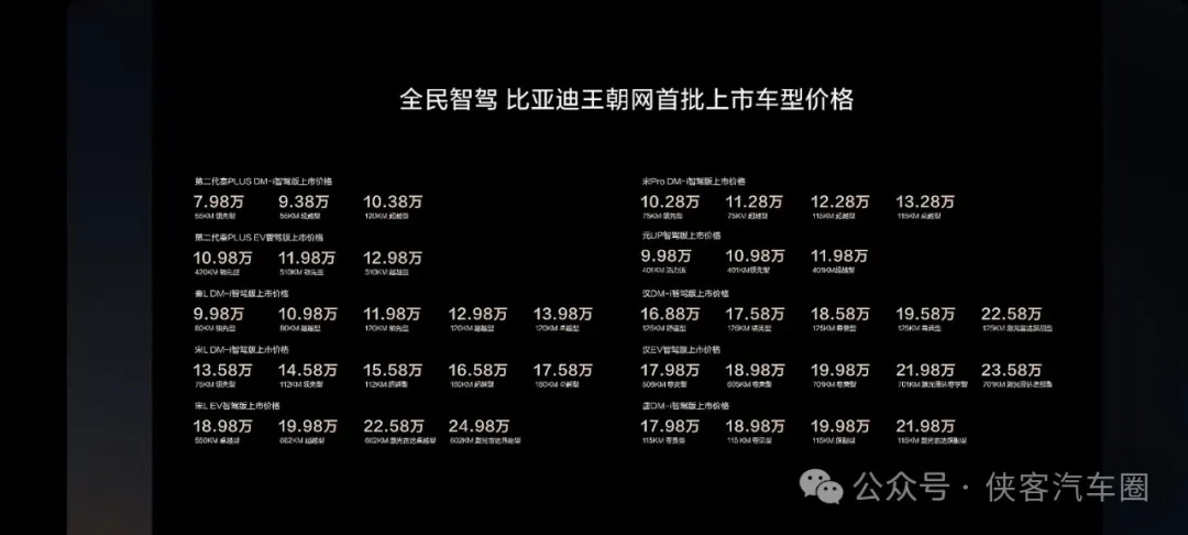 比亚迪20万元及以下车型,主要包括海洋系列和王朝系列,在此前,侠客曾以2024年销量数据介绍了比亚迪这两个系列,贡献了比亚迪销量的95%;其中,秦卖得是最好的系列。